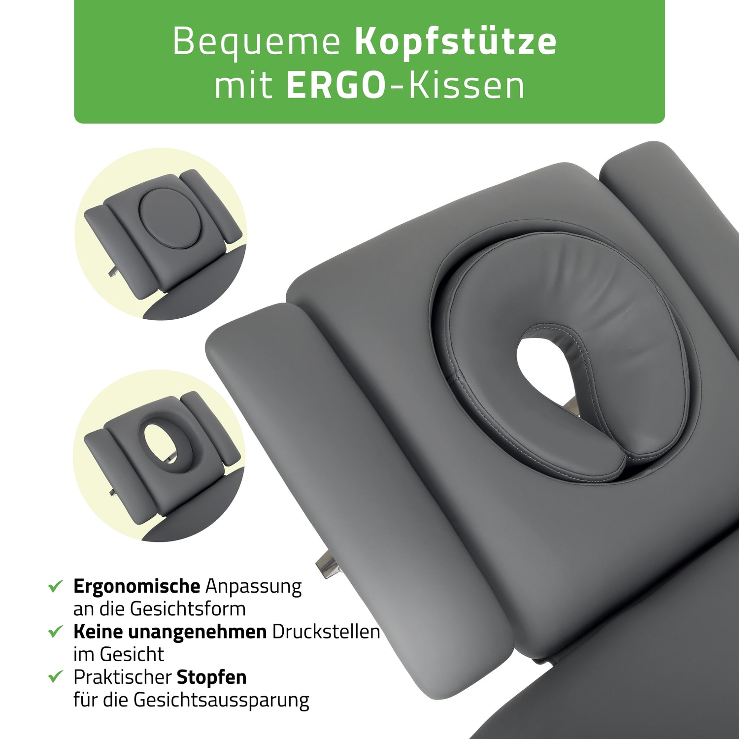 - Gesichtsöffnungs-Stopfen: Der mitgelieferte Stopfen ermöglicht eine schnelle Anpassung der Kopfstütze für bequemes Liegen auf dem Rücken oder der Seite.