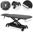 • Elektrische Höhenverstellung: Der Elektromotor sorgt für eine sanfte, präzise und leise Höhenverstellung im Bereich von 36 bis 85 cm. Er ermöglicht die Anpassung der Höhe an die Arbeitsposition, schützt die Wirbelsäule und verbessert die Ergonomie des Therapeuten. Die niedrige Einstellung erleichtert dem Patienten ein sicheres Auf- und Absteigen von der Liege.