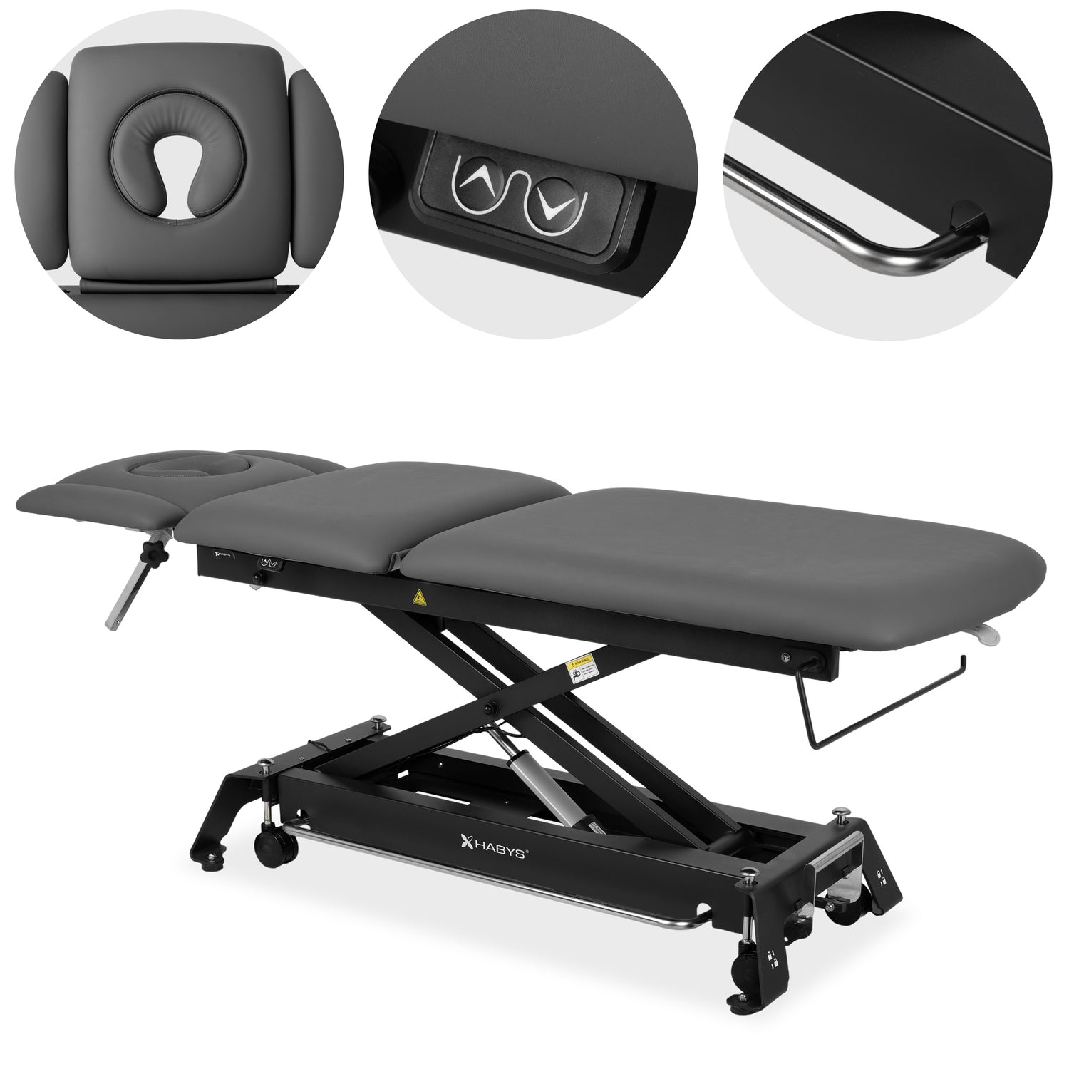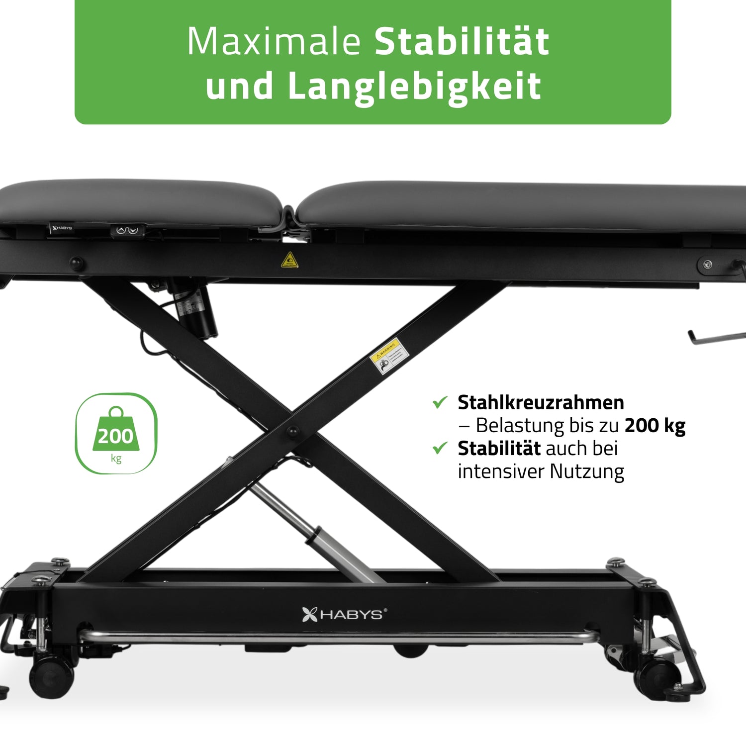 • Elektrisch verstellbare stationäre Massageliege der Marke Habys.