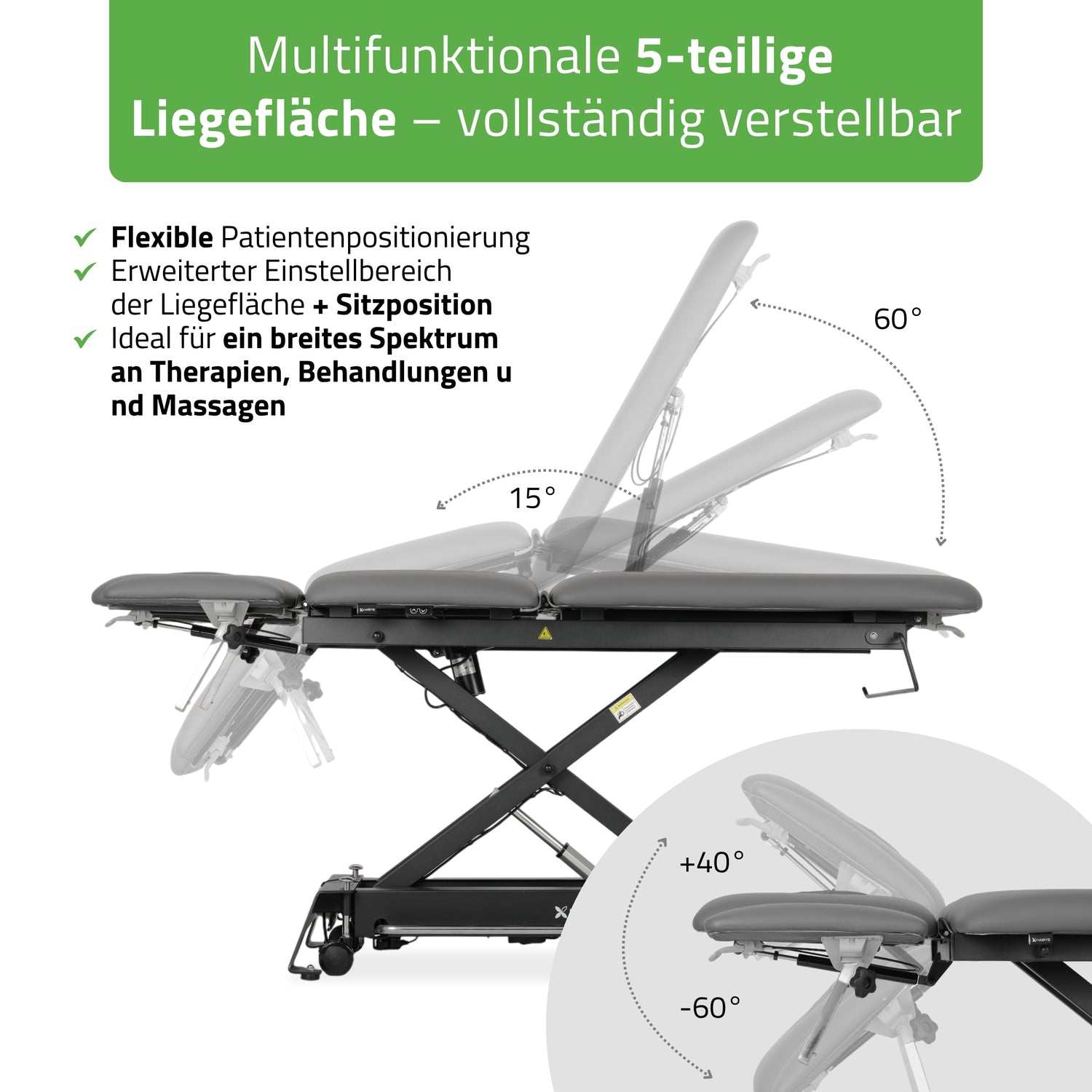 Therapieliege Elektrisch Evero Cross X5 Ergo | 5-Segmente | Steuerrahmen | Grau-Schwarz | 3 Jahre Garantie