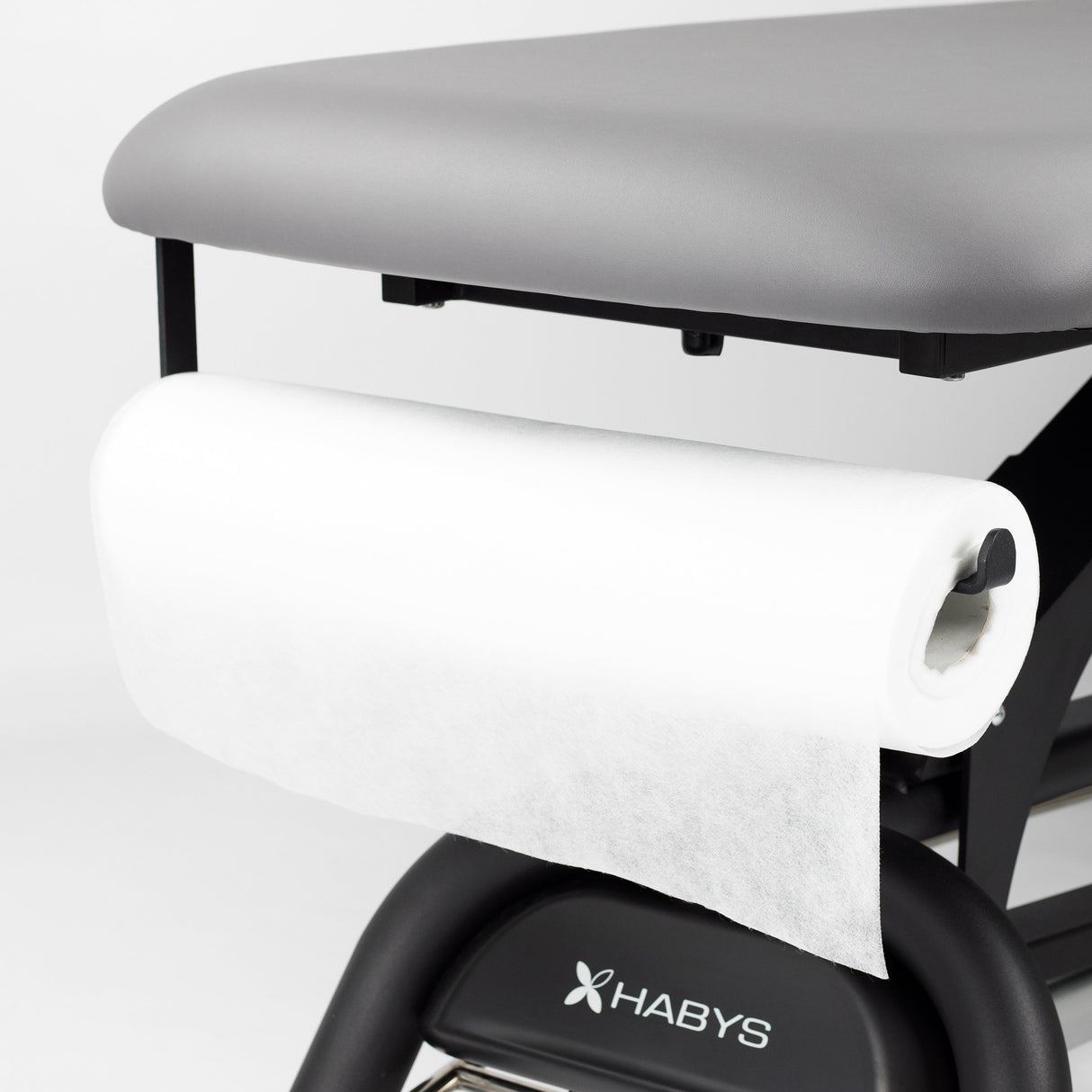 Der Tisch enthält einen praktischen Halter für eine Einweg-Rollenauflage.