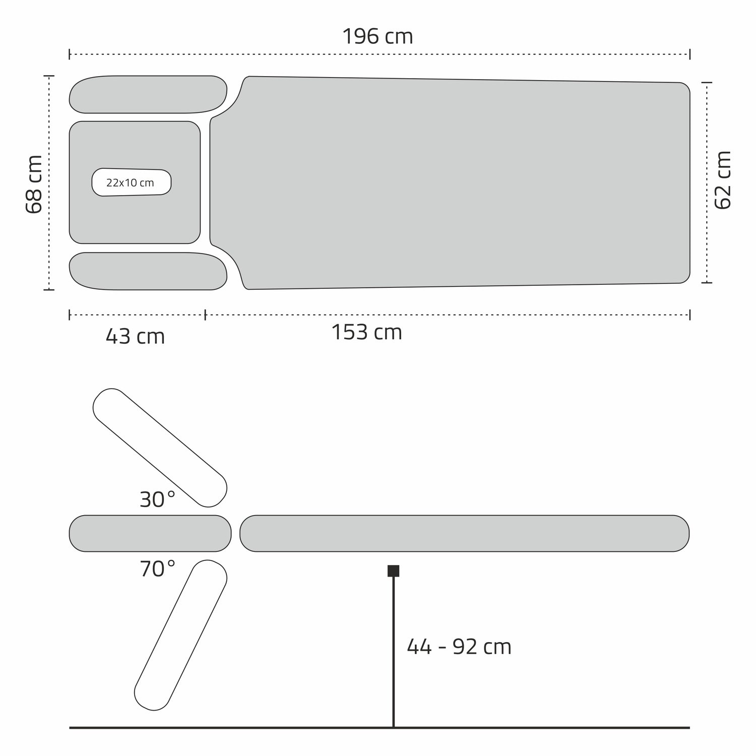 Die Agila 4 ist ein stationärer 4-Segment-Tisch mit Steuerungsrahmen. Das Modell zeichnet sich durch modernes Design, ergonomische Form, hohen Nutzungskomfort und zusätzliche Ausstattung wie einen Rollenhalter für Vliesauflagen aus. Es erfüllt seine Funktionen hervorragend in Physiotherapiepraxen als Rehabilitationsliege und in Massagestudios als äußerst komfortable Massageliege.
