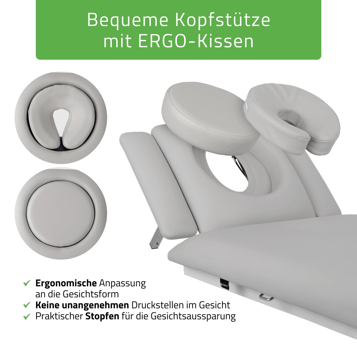 - Gesichtsöffnung mit Stopfen: Ermöglicht eine schnelle Anpassung der Kopfstütze für eine bequeme Rücken- oder Seitenlage.