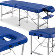 Die maximale Stabilität der klappbaren Massageliege ergibt sich u. a. aus der Verwendung von drei Beinen, hohen Querlatten zur Verstärkung des Rahmens der Liegefläche und rutschfesten Füßen. Die homogene, geschweißte Konstruktion, die durch stahl beschichtete Kabel mit widerstandsfähigen Verbindungen stabilisiert wird, ist für eine Belastung von bis zu 450 kg geeignet! Runde Aluminiumprofile mit dem Fast-Lock-System sorgen für ausgezeichnete Stabilität, hohe Leichtigkeit und die Möglichkeit, die Höhe des Tisches schnell zu verstellen.