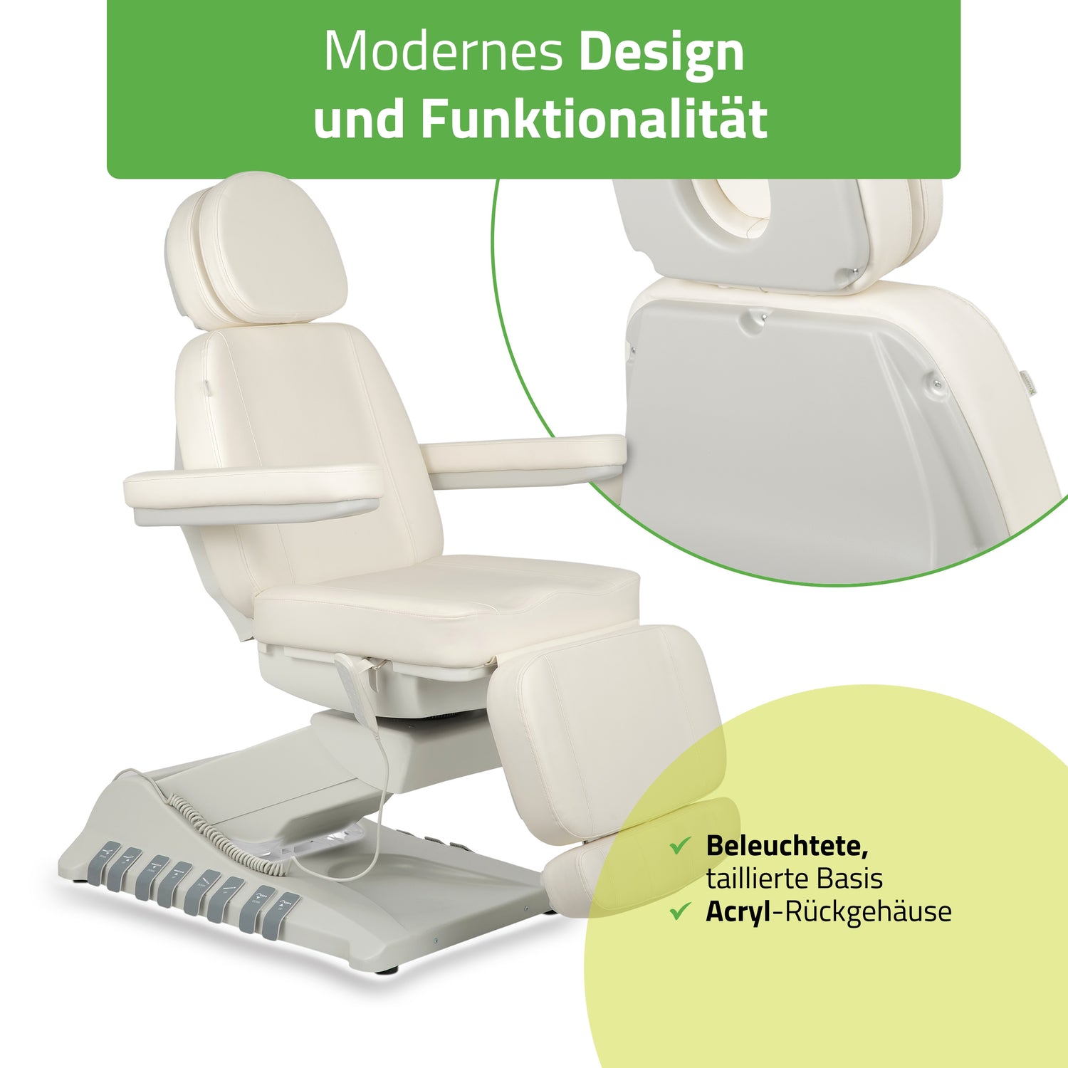 Kosmetikliege Elektrisch | Luxoria PRO 5 | Kosmetiksessel mit elektrischer Verstellung | Weiß | 3 Jahre Garantie