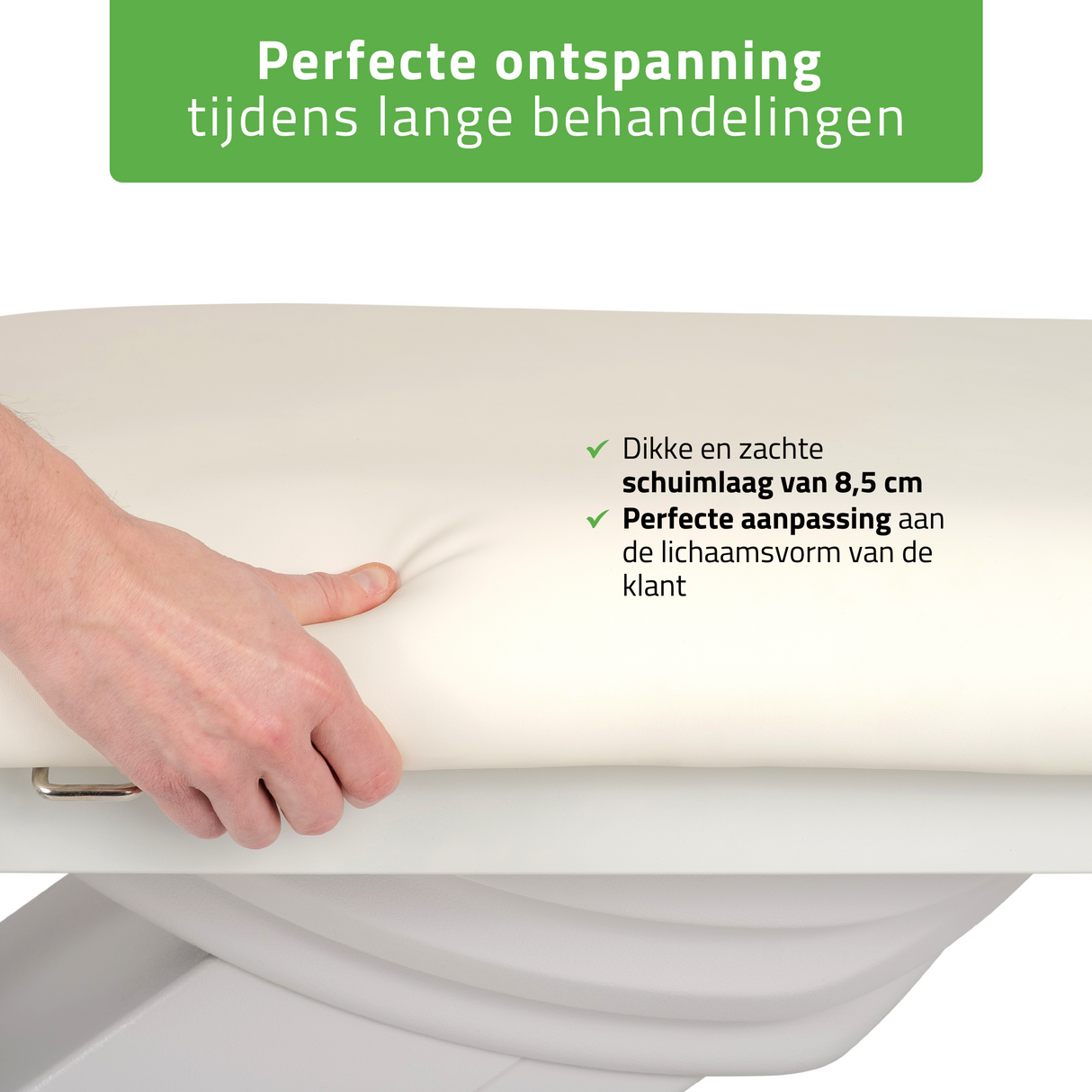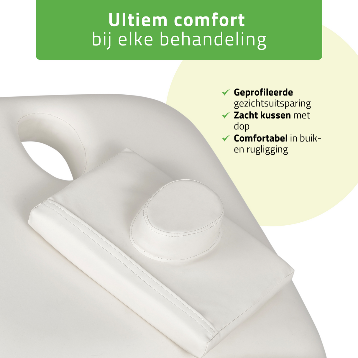 • Ergonomische gezichtsuitsparing met kussen: perfect voor massages en behandelingen in buikligging.