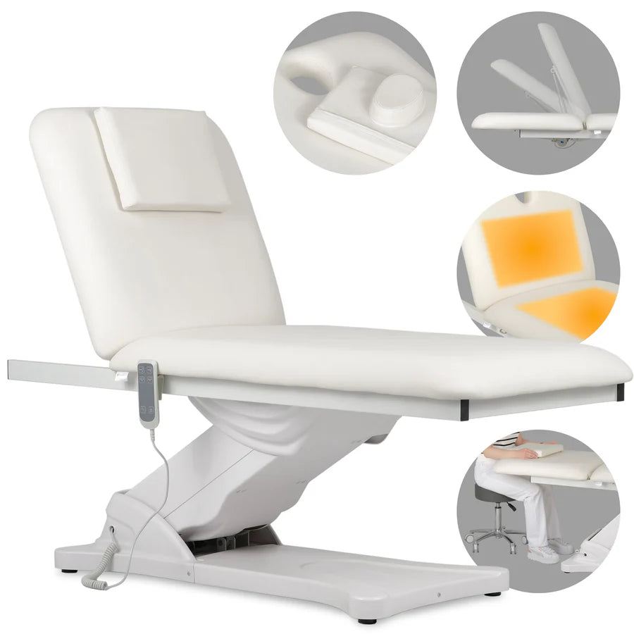 Camilla PRO 2 is een cosmetische stoel van PREMIUM-klasse, ontworpen voor professionals die het hoogste comfort en moderne functionaliteit waarderen. Deze elektrische massagetafel van de nieuwe generatie combineert een elegant design met geavanceerde technologie en uitzonderlijk gebruiksgemak.