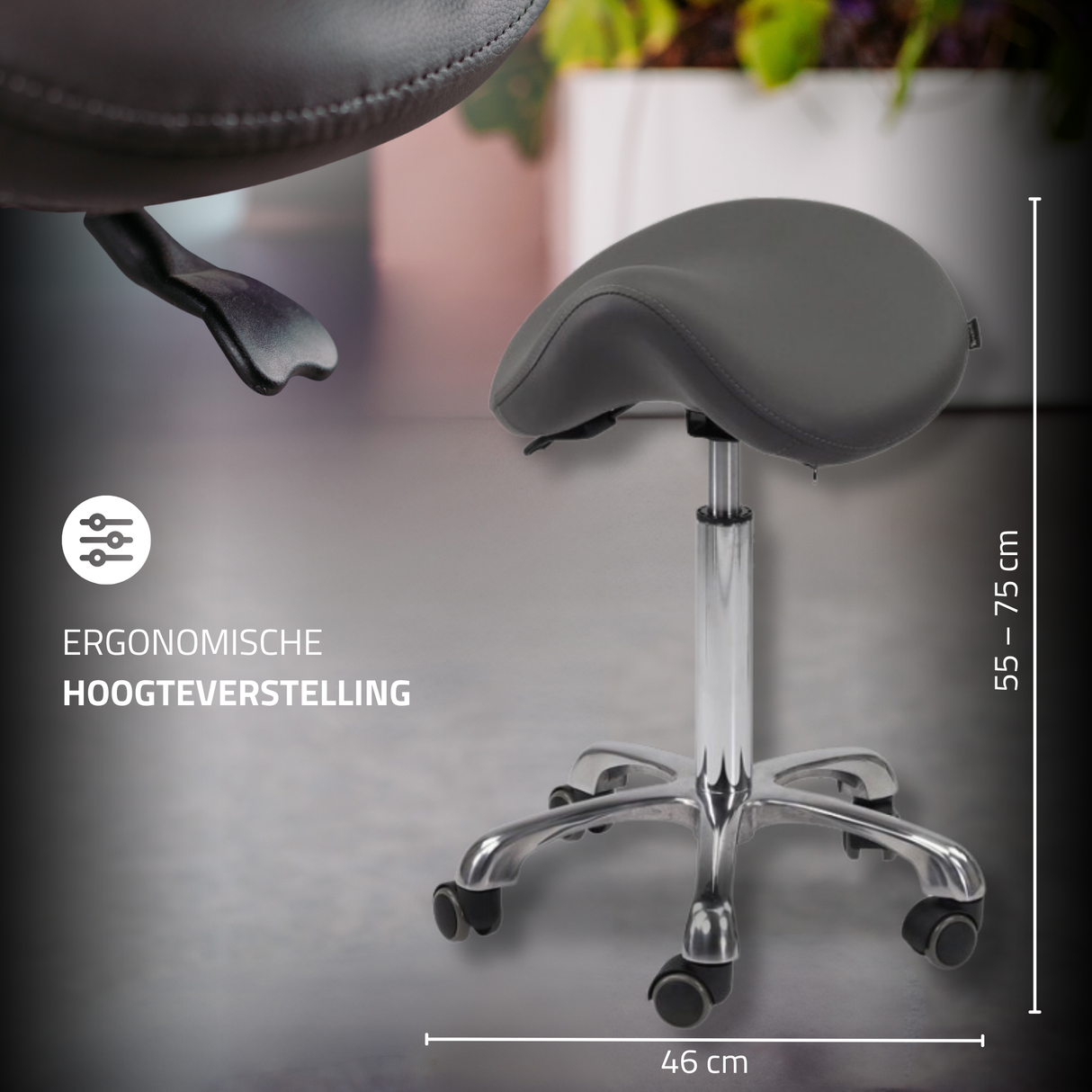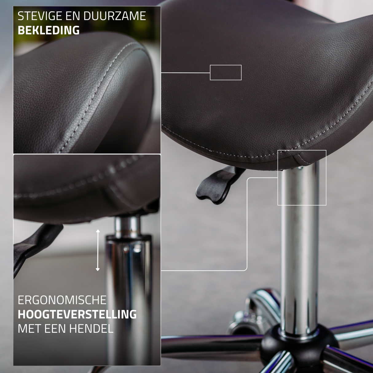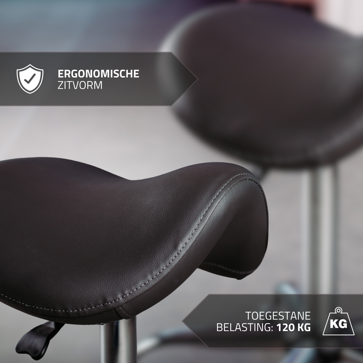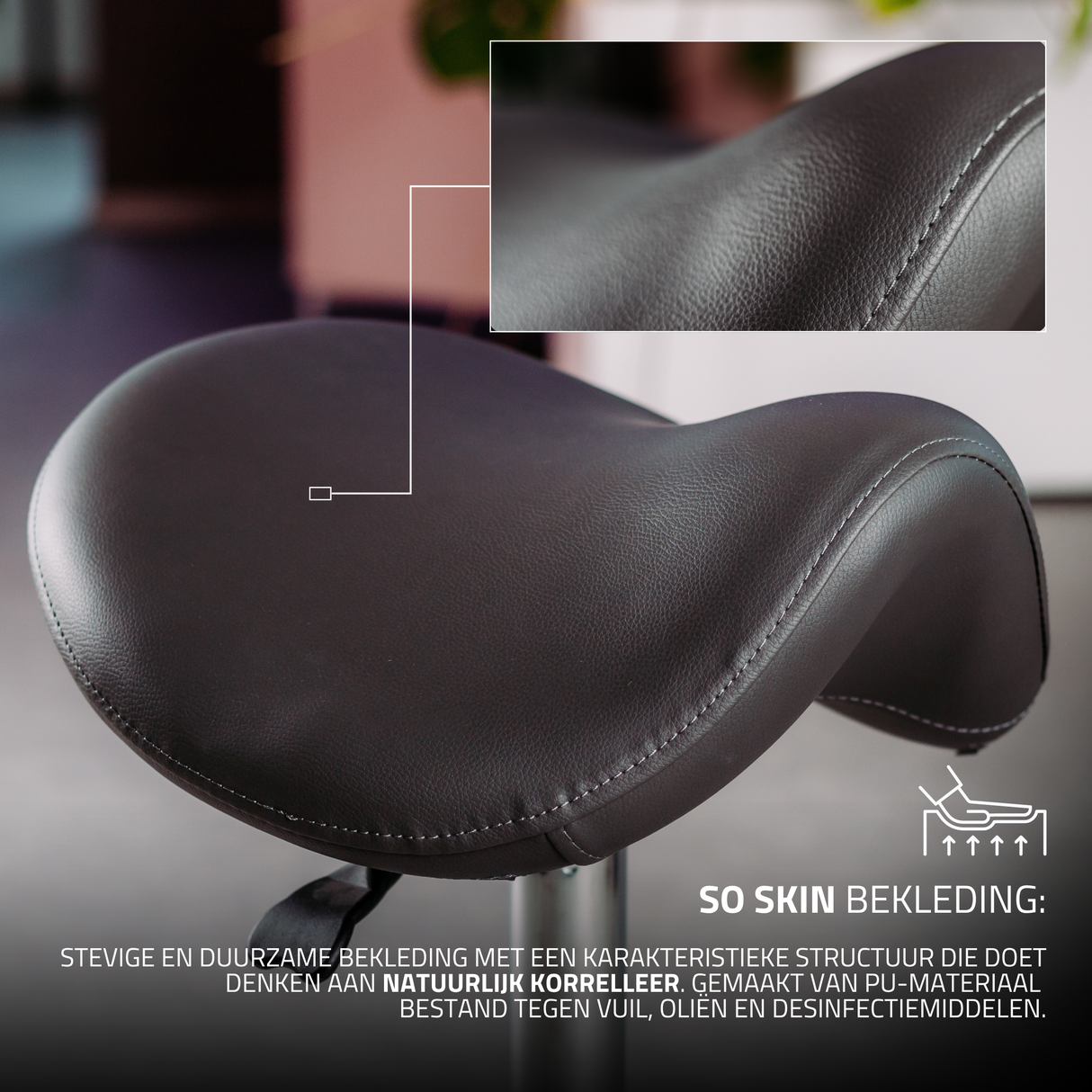 De gevormde zitting van de Alma zadelkruk zorgt voor een optimale gewichtsverdeling en helpt een gezonde houding te behouden.