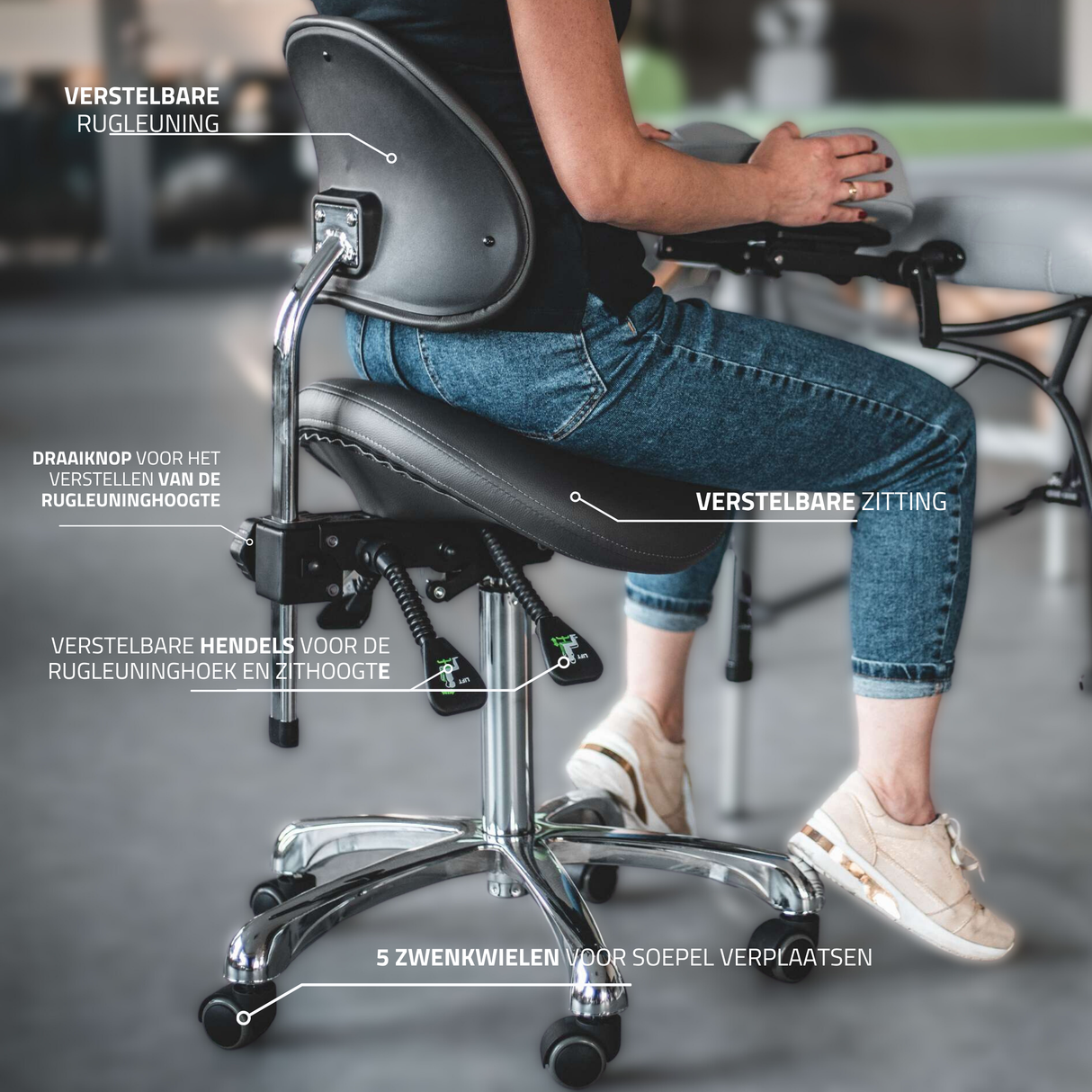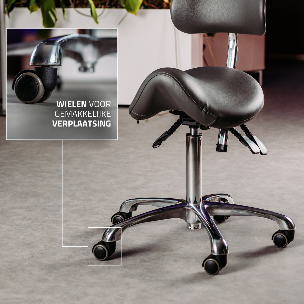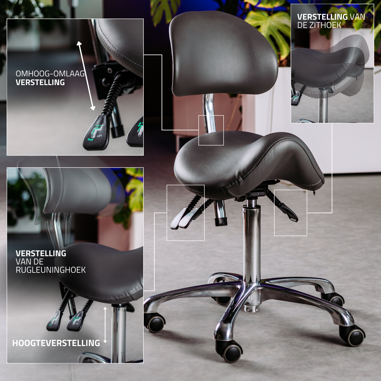 De zadelkruk met rugleuning Diana kenmerkt zich door: