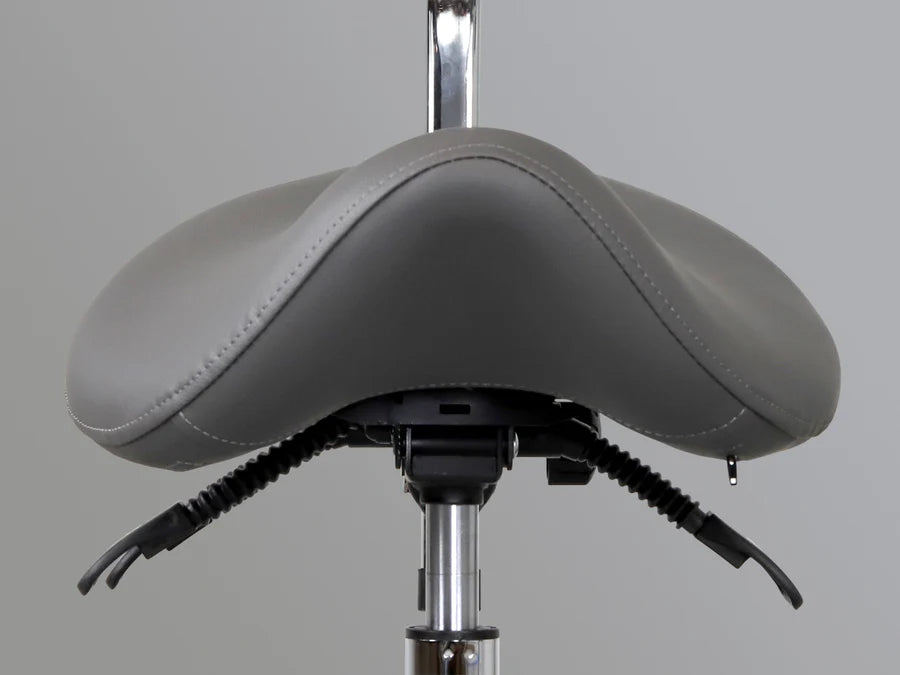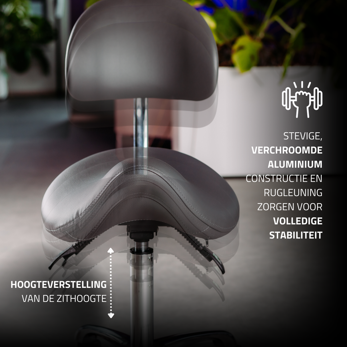 De ergonomische zadelkruk met rugleuning Diana is uitgerust met een modern verstelbaar zit- en rugleunsysteem. De geprofileerde zitting zorgt voor een optimale gewichtsverdeling, ondersteunt een gezonde lichaamshouding en is verstelbaar naar voren en naar achteren. De stevige constructie en de verstelbare rugleuning garanderen volledige stabiliteit en comfort. Daarnaast zorgen de soepel lopende wielen voor een gemakkelijke beweging. De ergonomische zadelkruk met rugleuning Diana heeft een structuur van verchroomd aluminium.