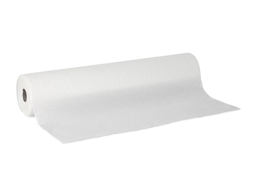 Wegwerpbedekking op rol, gemaakt van stevig, tweelaags cellulose. Wordt gebruikt als beschermlaag in medische instellingen, huisartsenpraktijken, schoonheids- en fysiotherapiesalons.
