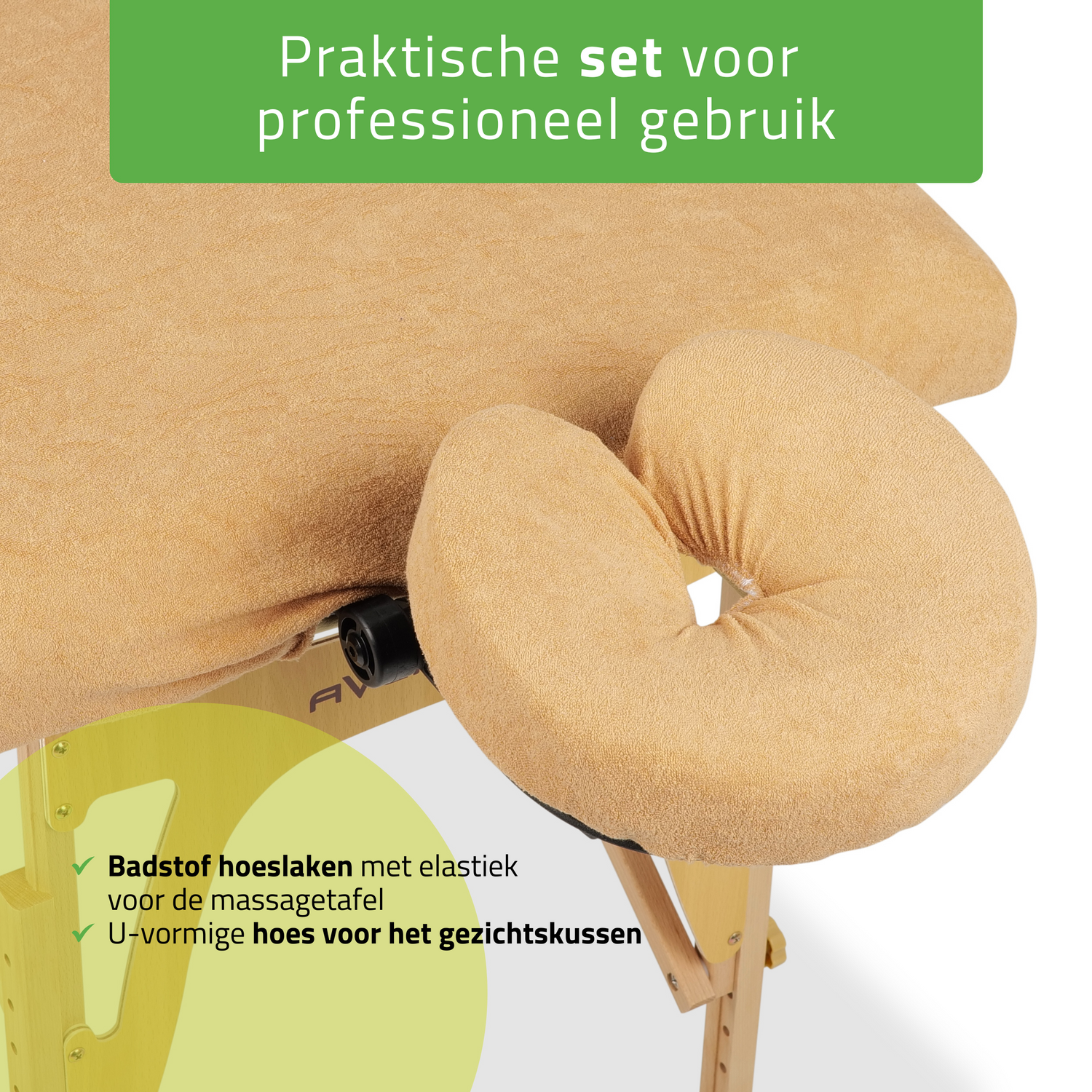 Eendelig badstof hoeslaken | voor inklapbare massagetafels | 60/165 - Beige is nabesteld en wordt verzonden zodra het weer op voorraad is.