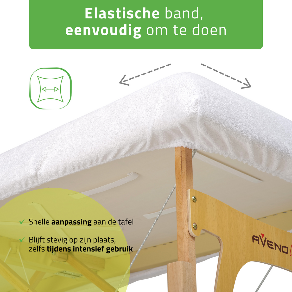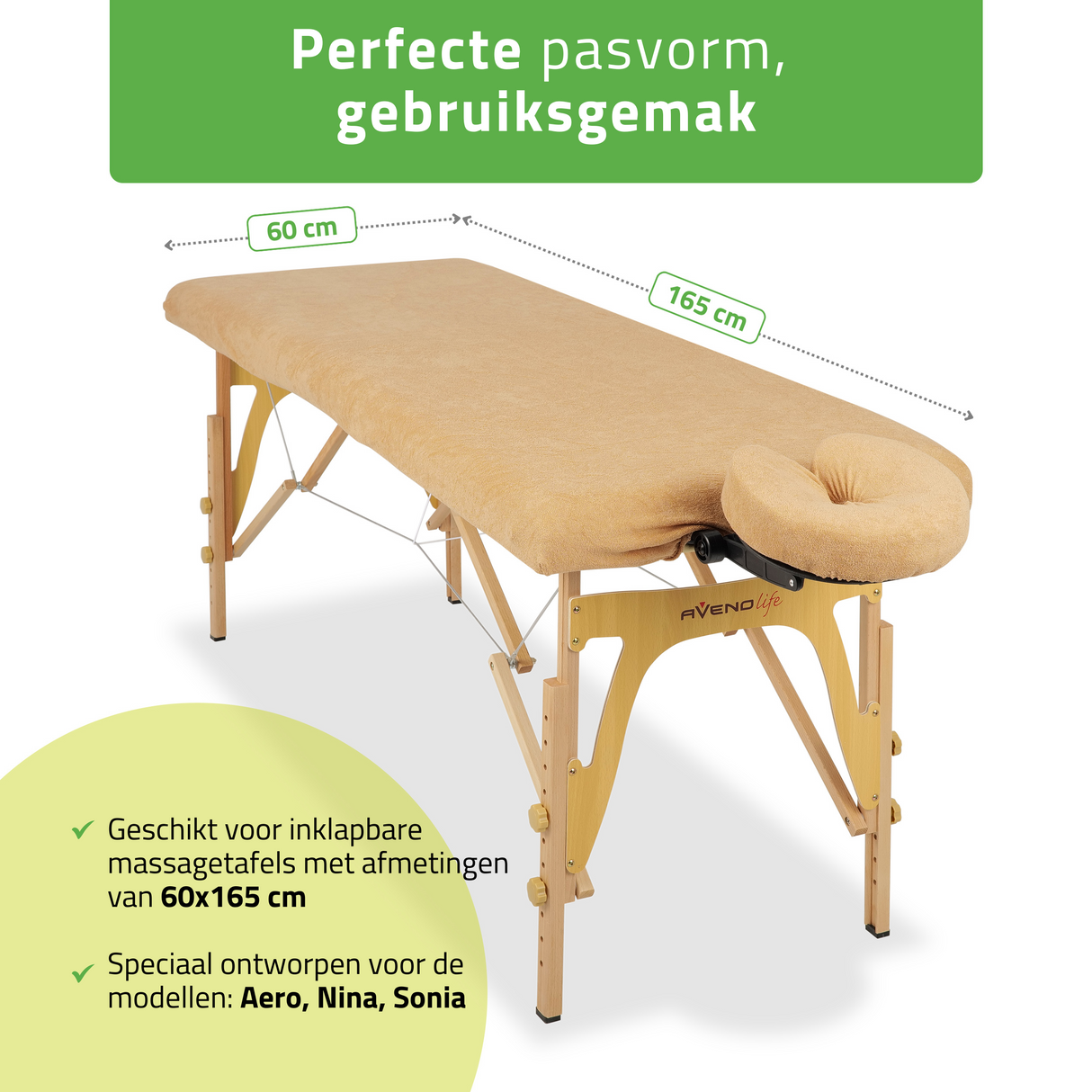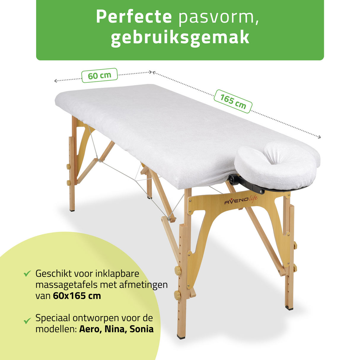 Het badstof hoeslaken is speciaal ontwikkeld voor opvouwbare massagetafels en past perfect op de volgende modellen: