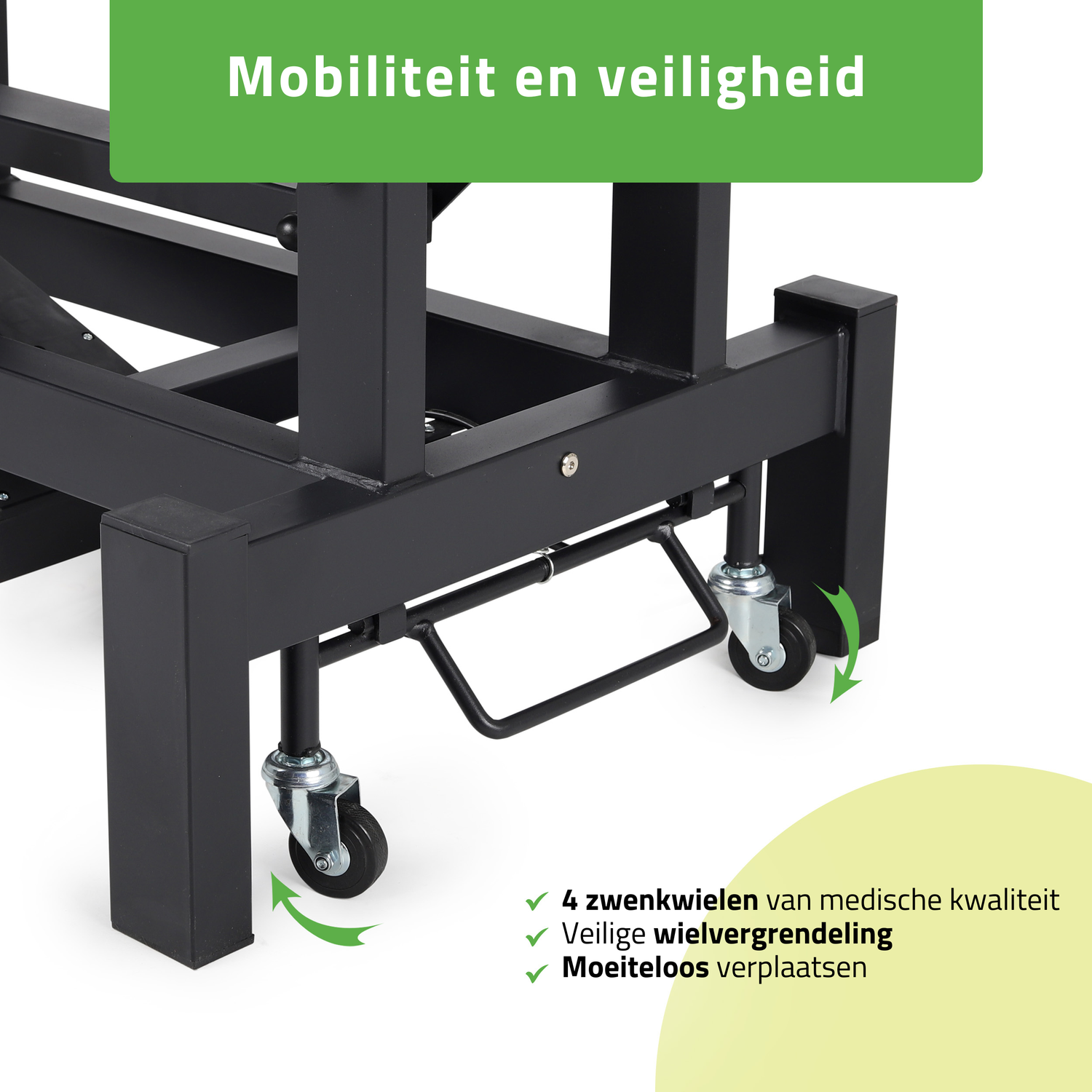 - Robuuste constructie: De Fortis 2 tafel is ontworpen voor optimale stabiliteit en duurzaamheid. Het frame is zo ontworpen dat het een maximale belasting van tot 200 kg kan dragen, wat de veiligheid bij behandelingen voor patiënten met een hoger lichaamsgewicht garandeert.