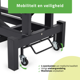 - Handbediening met vergrendelingsfunctie: Met de handbediening kan de hoogte van de tafel eenvoudig en snel worden aangepast. De extra vergrendelingsfunctie op de afstandsbediening maakt het mogelijk de hoogte snel te beveiligen tegen onbedoelde veranderingen.