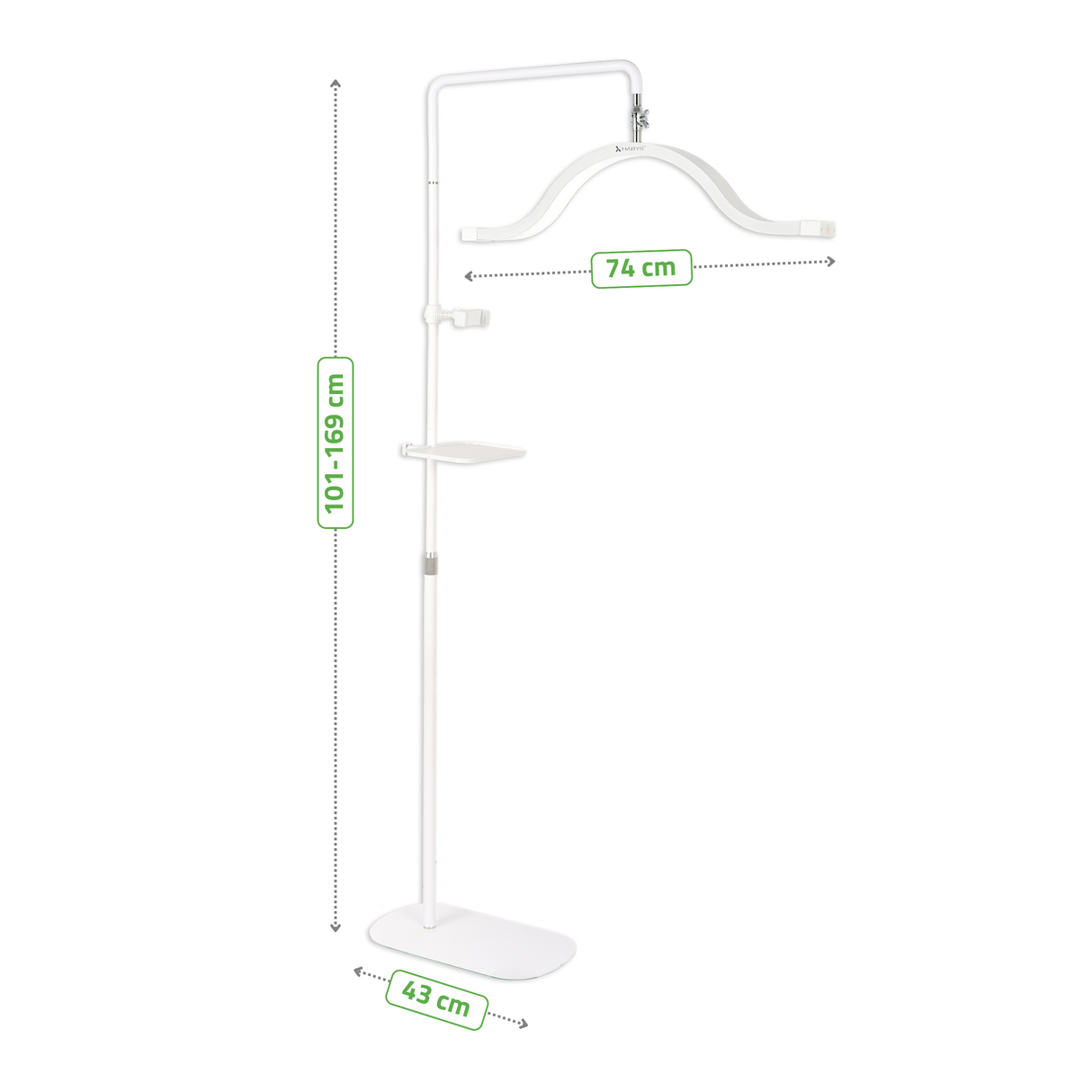 Dankzij drie kleurtemperatuurmodi (warm, neutraal, koud), een traploze helderheidsregeling en een dubbele instelling van de lichthoek past de VENA zich perfect aan elke taak en ruimte aan. Het intuïtieve touch-bedieningspaneel maakt eenvoudige controle van alle parameters mogelijk, terwijl de stabiele constructie met een in hoogte verstelbare spankracht van 101 tot 169 cm volledige flexibiliteit biedt bij de positionering. Extra accessoires verhogen de functionaliteit van de lamp verder.