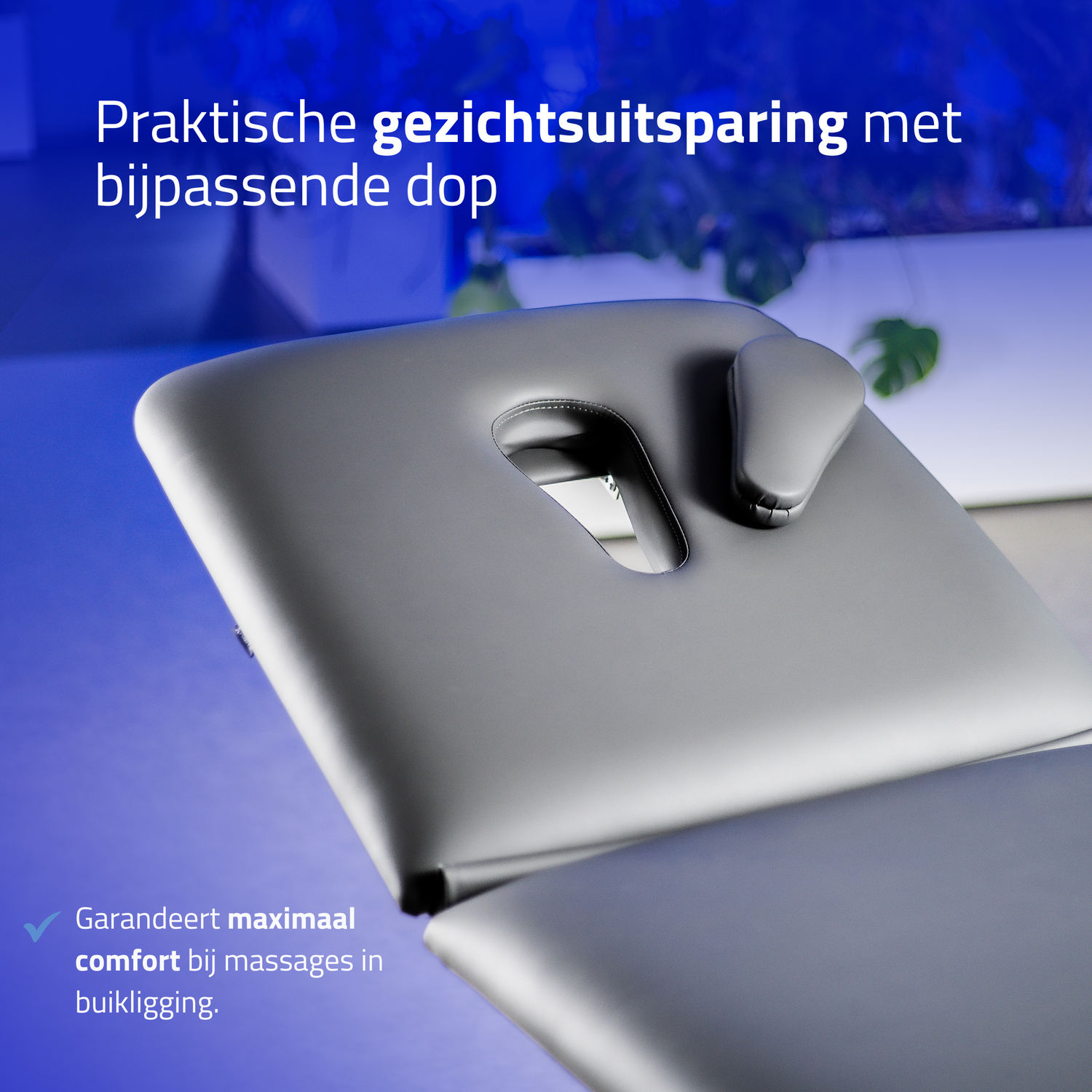 - Dop voor de gezichtsuitsparing: Maakt een snelle aanpassing van het hoofdgedeelte mogelijk voor een comfortabele ligpositie op de rug of de zij.