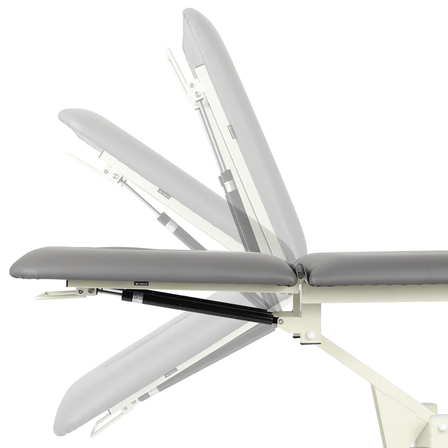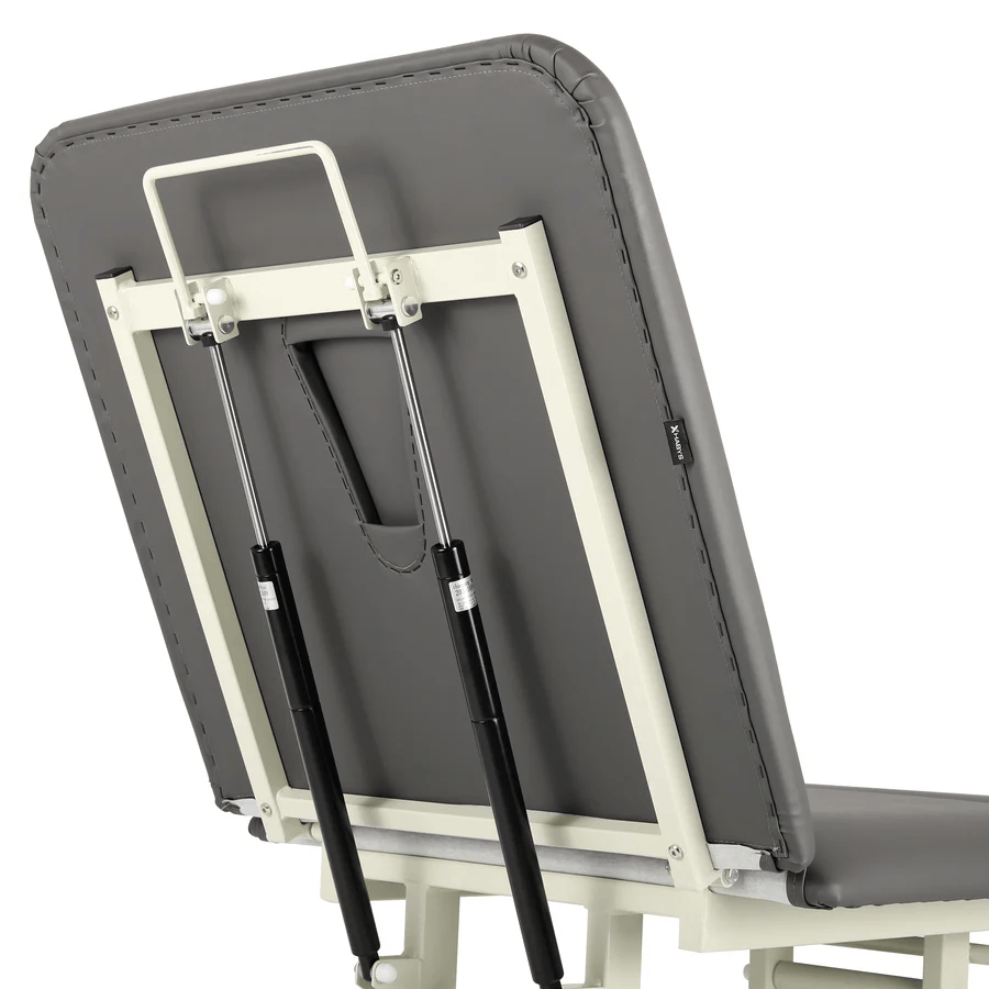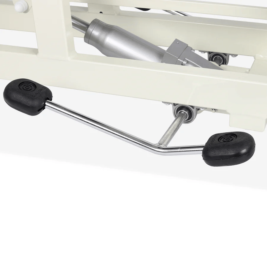 - Gecertificeerde hydraulische cilinder: Het hoogteverstellingssysteem, dat zich aan beide zijden van de tafel bevindt, maakt een traploze hoogteverstelling mogelijk in het bereik van 47–87 cm. Dit garandeert ergonomie voor de therapeut en comfort voor de patiënt, zonder dat een aansluiting op het elektriciteitsnet nodig is.