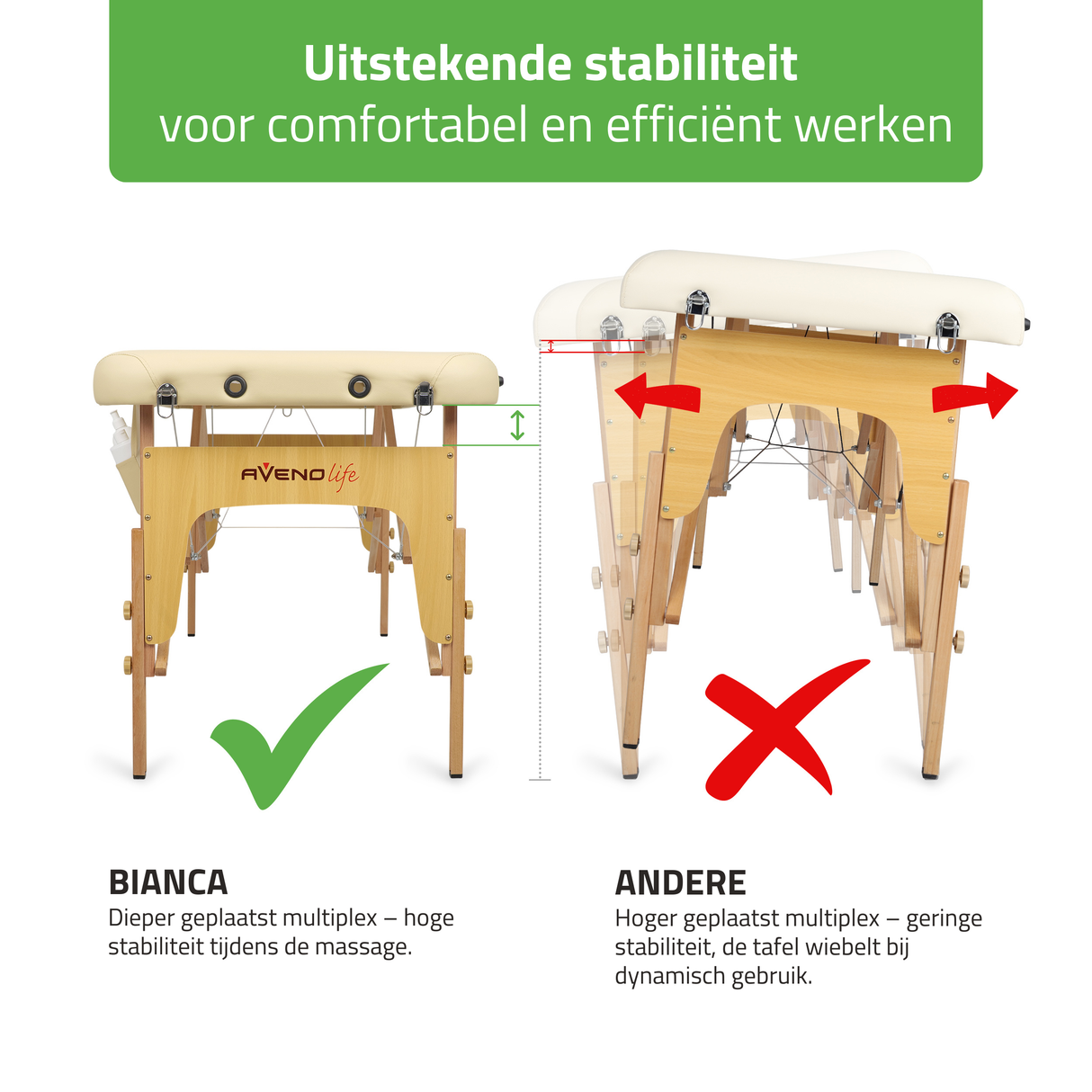 Bianca is de uitstekende keuze voor iedereen die op zoek is naar een betaalbare, maar bewezen en geteste oplossing voor een opvouwbare en verstelbare massagetafel.