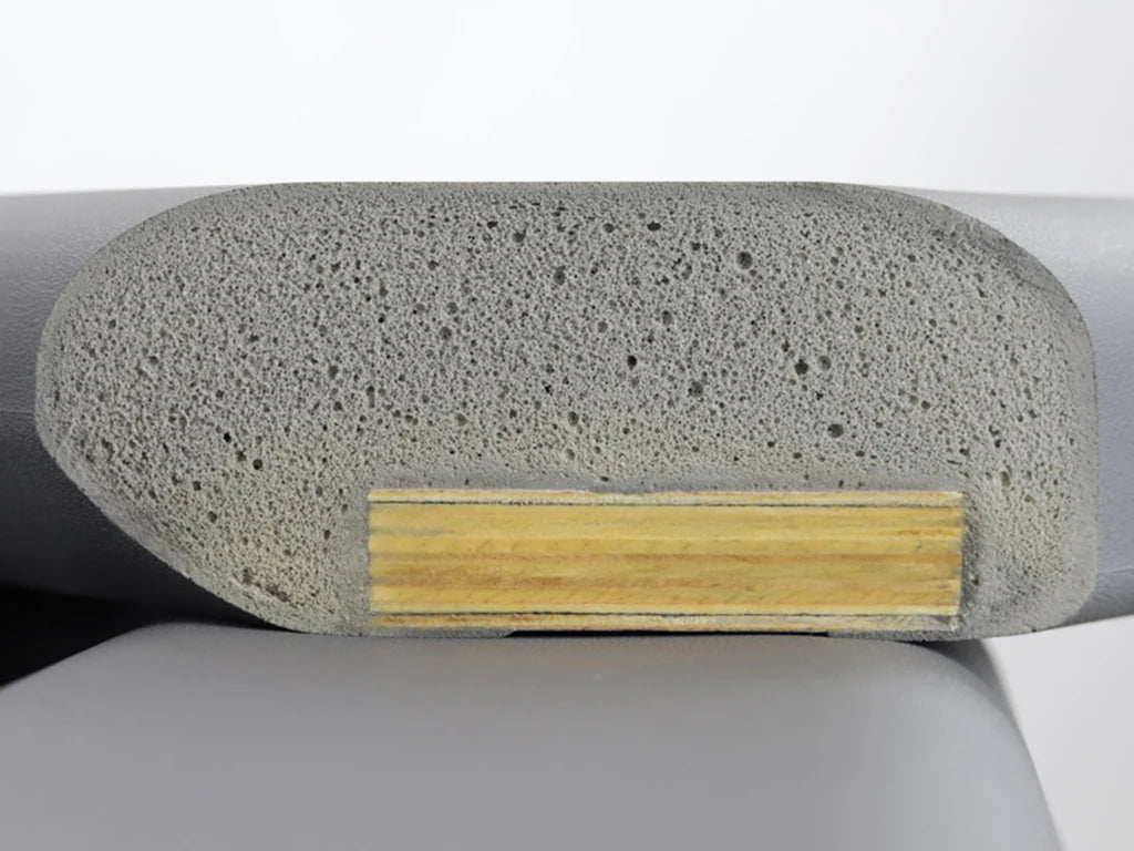 Het moderne Integra-schuim wordt geproduceerd met innovatieve technologie. Het bestaat uit een schuimkern die overgaat in een harde oppervlakte die lijkt op natuurlijke huid. Tafels die van dit schuim zijn gemaakt, zijn naadloos, gemakkelijk te desinfecteren, aangenaam in de hand en bestand tegen slijtage, UV-straling en water. Ze vertonen ook aanzienlijk hogere duurzaamheid en weerstand tegen de gebruikte reinigings- en desinfectiemiddelen in vergelijking met traditioneel kunstleer. Het productieproces van het integrale schuim is milieuvriendelijk.