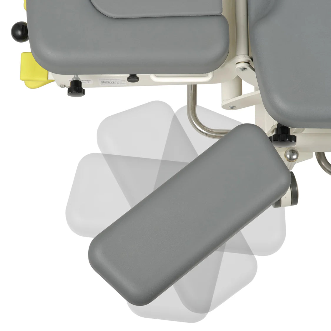 • Ergonomische Drop-hebel met een uniek afstelmechanisme waarmee je de patiënt moeiteloos kunt optillen