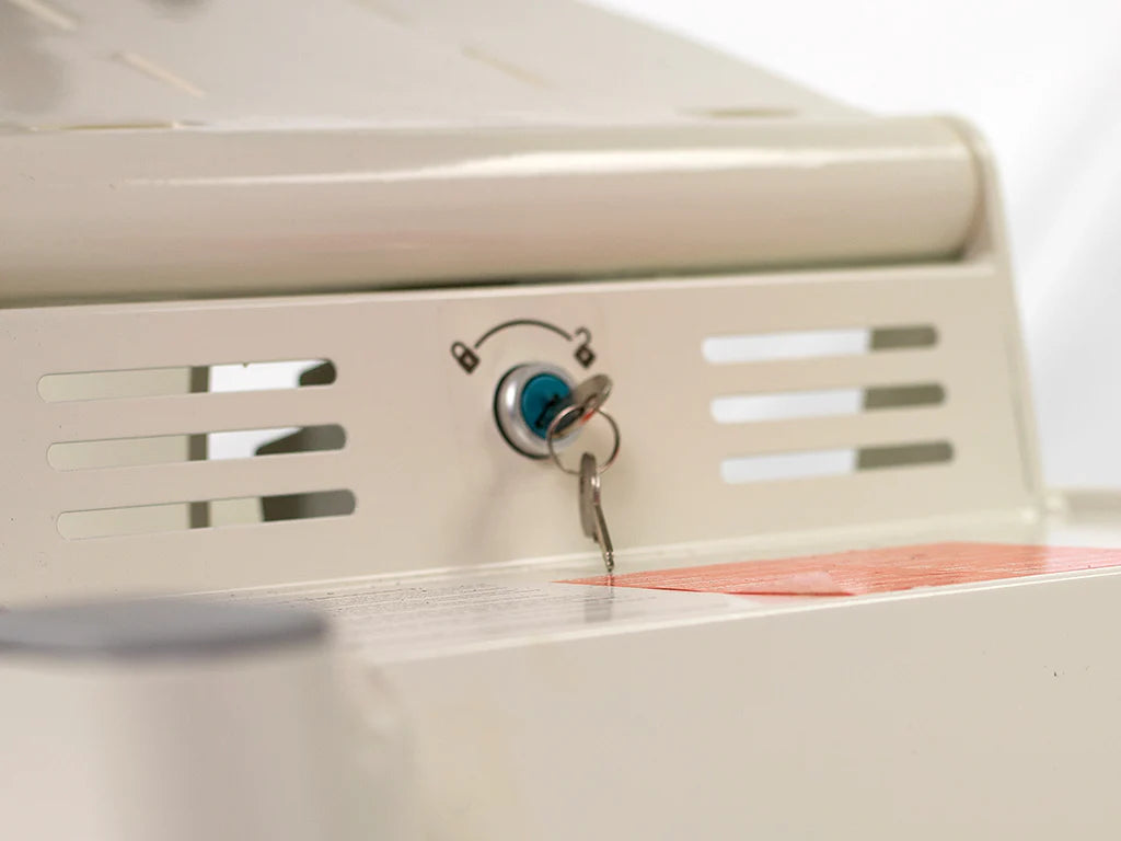 Het Evero therapiebad heeft een speciaal afstelmechanisme voor de hoogte, dat is uitgerust met een anticollisiefunctie. Dit betekent dat je het mechanisme in moet drukken om het bed omhoog te tillen en omhoog moet trekken om het te laten zakken. Deze innovatieve functie zorgt voor een veilige en efficiënte hoogteverstelling en minimaliseert het risico op ongewenste botsingen met objecten of mensen in de buurt van het bed. Bovendien is het Evero therapiebad uitgerust met een beveiligingssysteem: een vergrendelsysteem met een sleutel waarmee de stroom kan worden onderbroken door de sleutel te draaien wanneer de gebruiker niet aanwezig is. Deze functie biedt een extra veiligheidslaag en gemoedsrust bij afwezigheid.