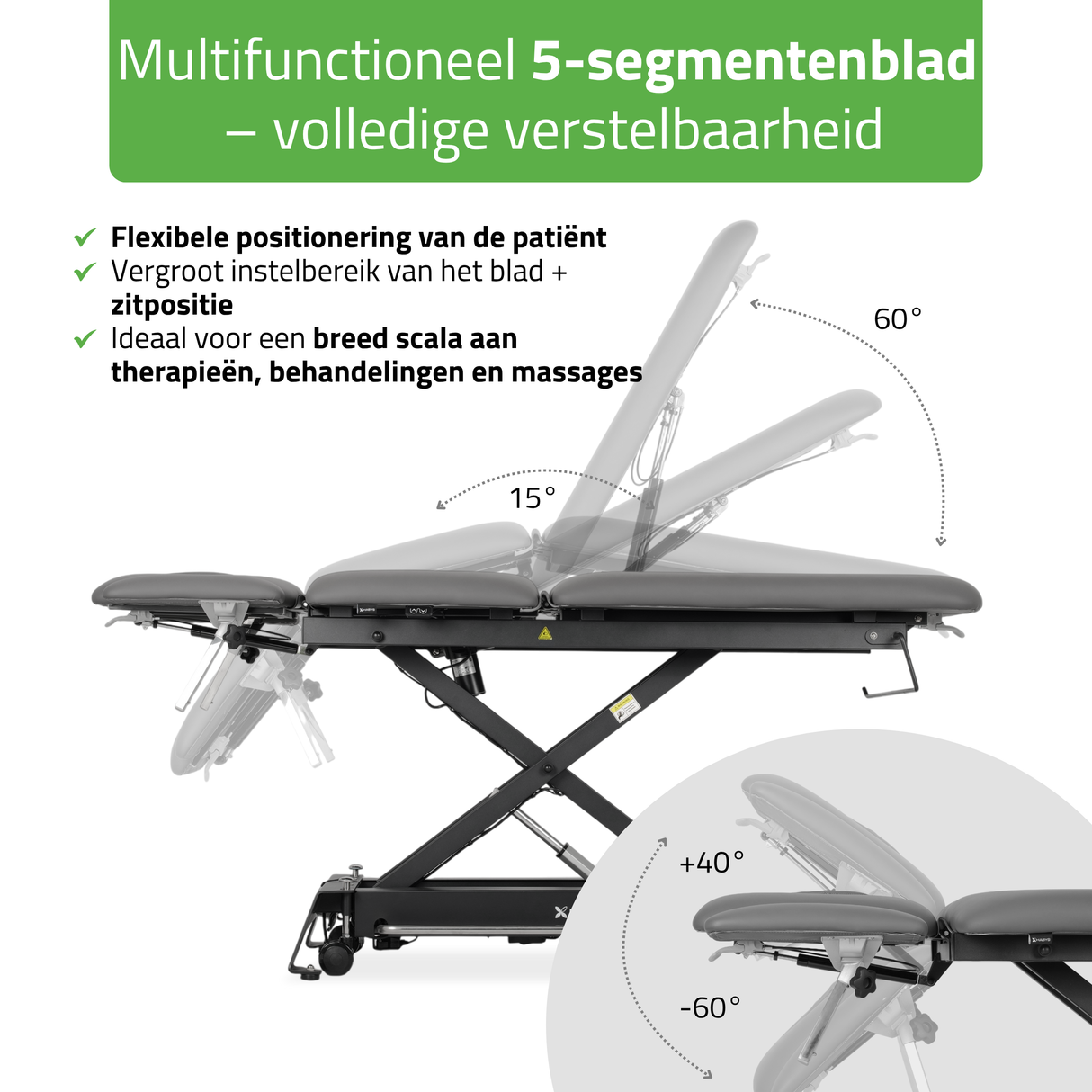 Elektrische Therapietafel Evero Cross X5 Ergo | 5-Segmenten | Bedieningsframe | Grijs-Zwart | 3 Jaar Garantie