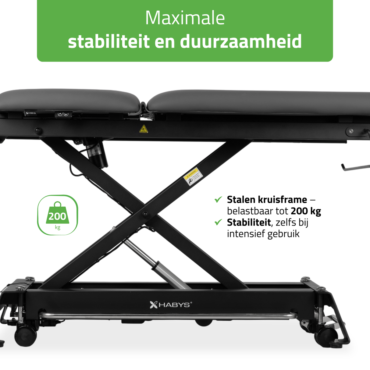 • Elektrisch verstelbare stationaire massagetafel van het merk Habys.