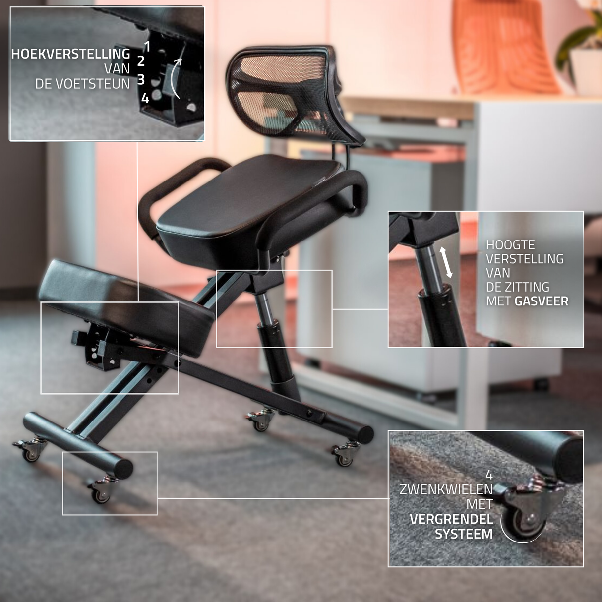 De ergonomische Kniestuhl Ergo Pro kenmerkt zich door: