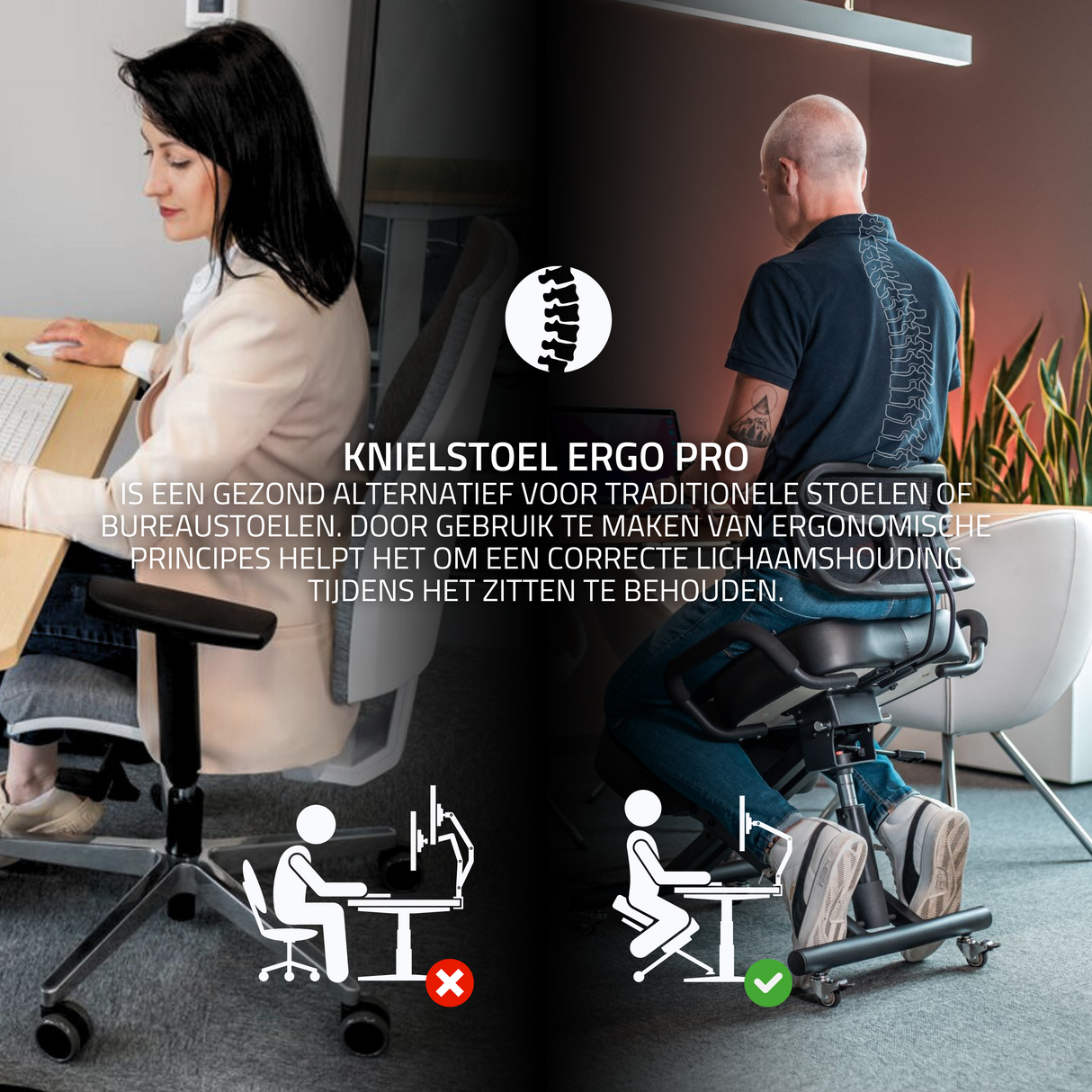 De ergonomische kniestoel Ergo Pro is een profylactische en revalidatiestoel die u in staat stelt een gezonde zithouding aan te nemen en te versterken.