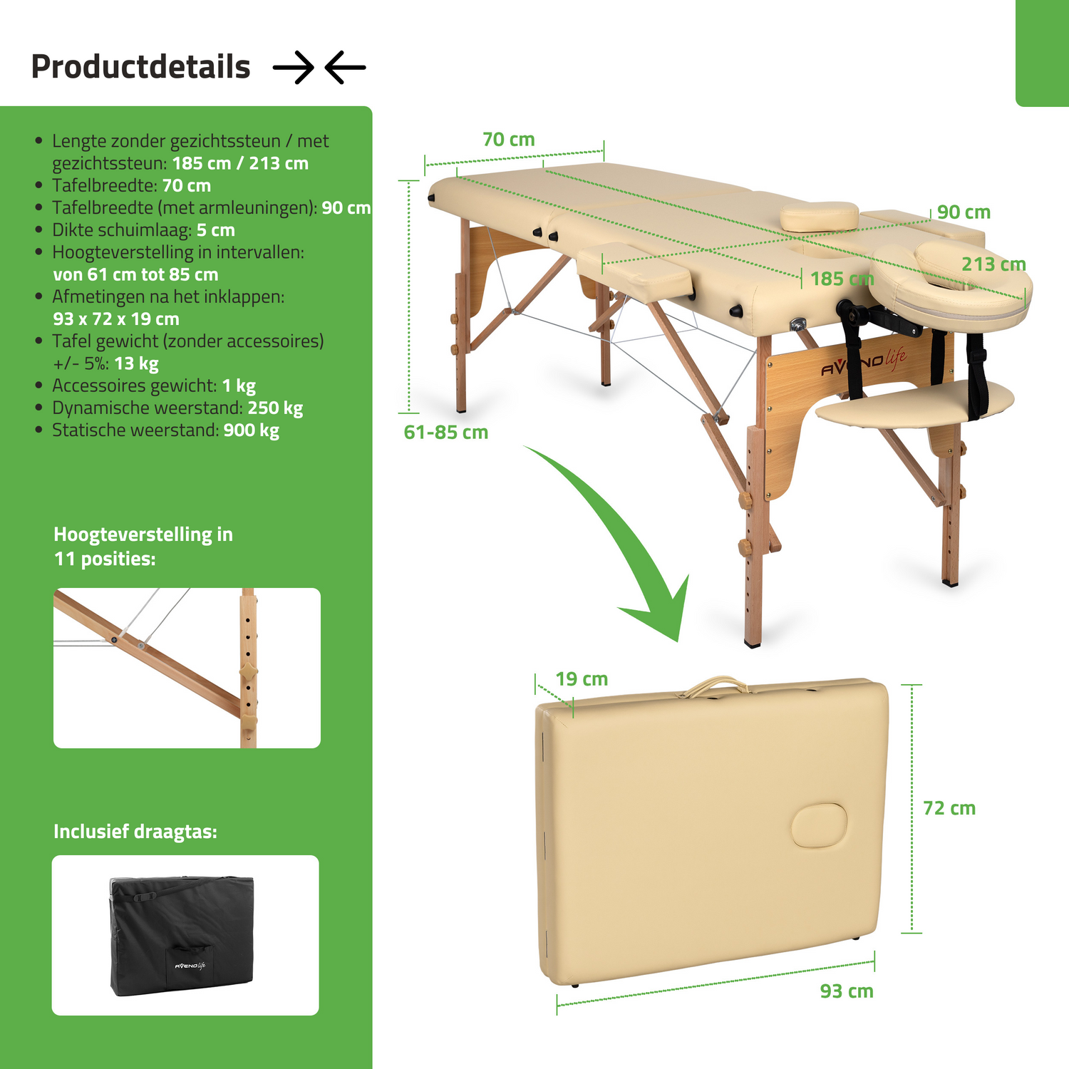 - 5 cm tweelaags schuim voor extra comfort van de patiënt en gemak voor de masseur