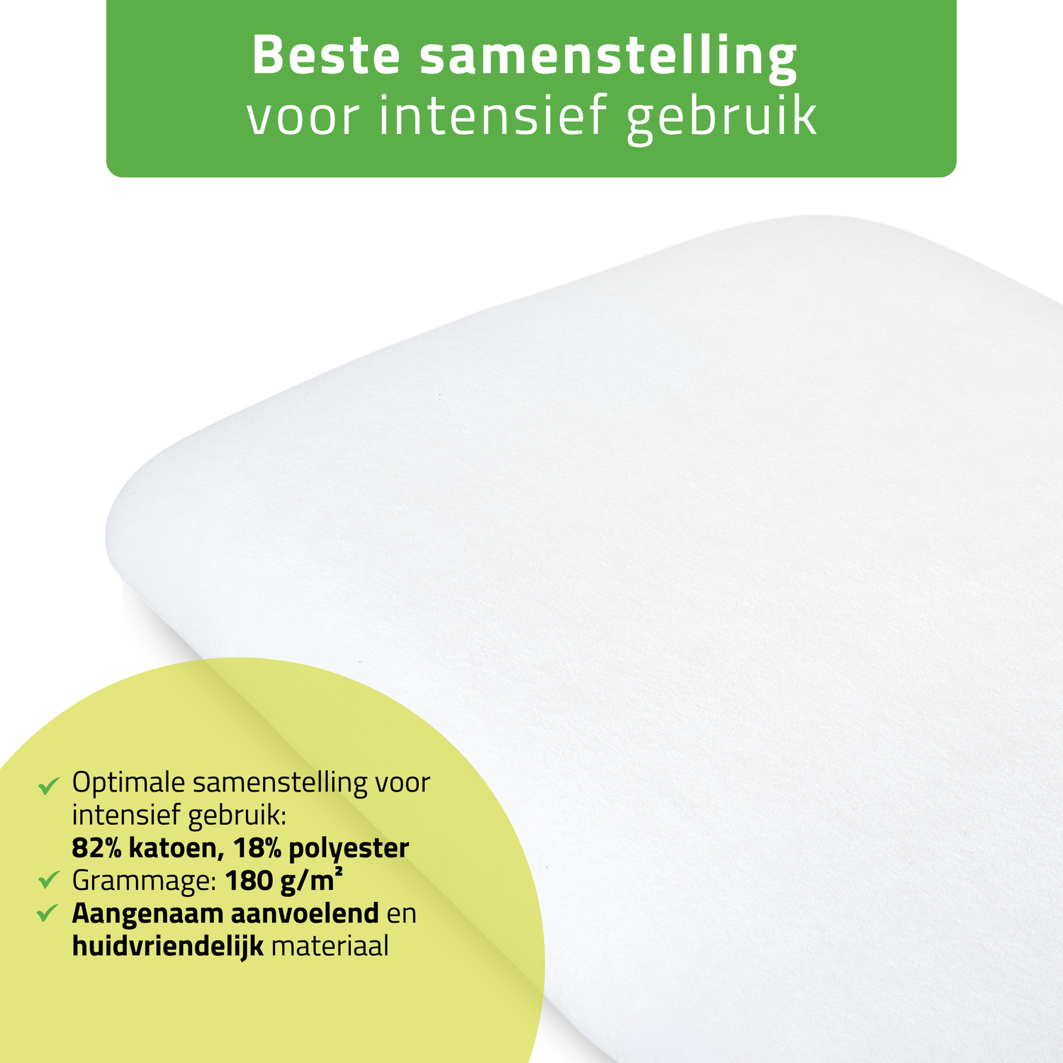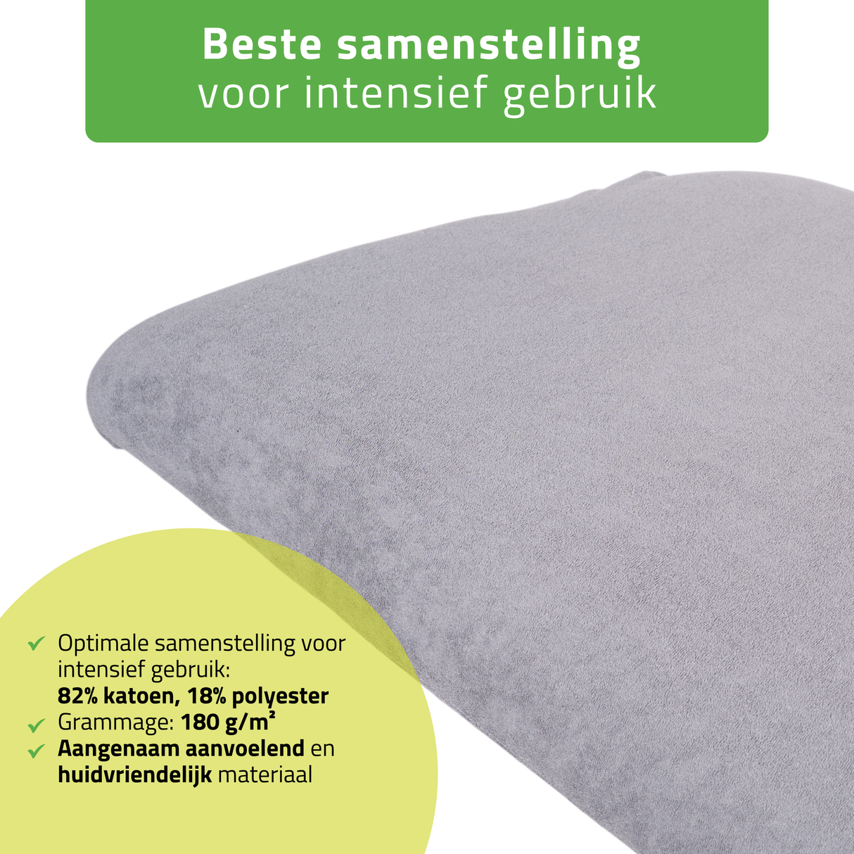 Optimale samenstelling voor intensief gebruik – 82% katoen, 18% polyester: natuurlijk katoen zorgt voor zachtheid en absorptievermogen, terwijl de toevoeging van polyester de duurzaamheid en elasticiteit verhoogt.