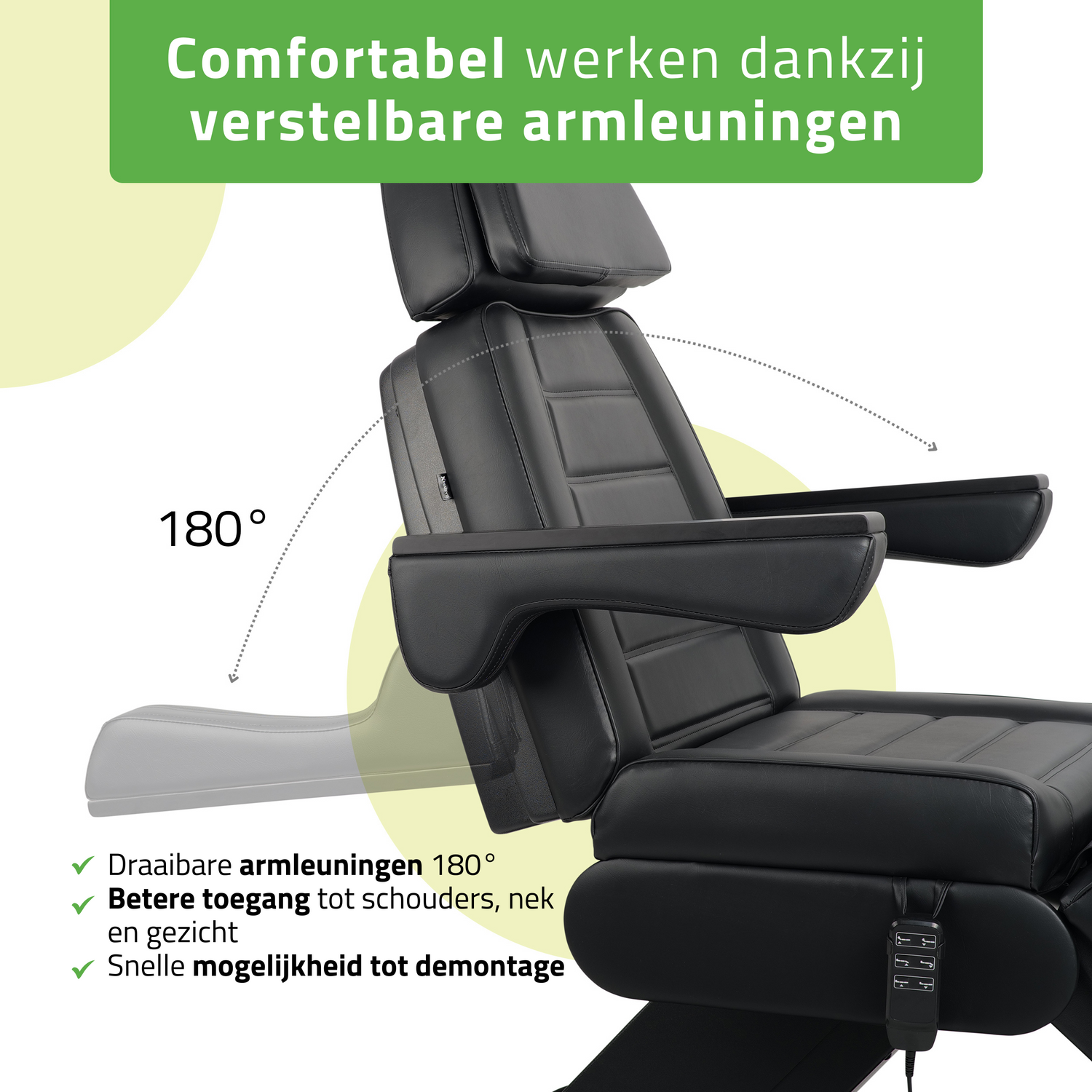 Behandelstoel Elektrisch | Leo PRO 4 | Cosmetische stoel met elektrische verstelling | Handbediening - Zwart is nabesteld en wordt verzonden zodra het weer op voorraad is.