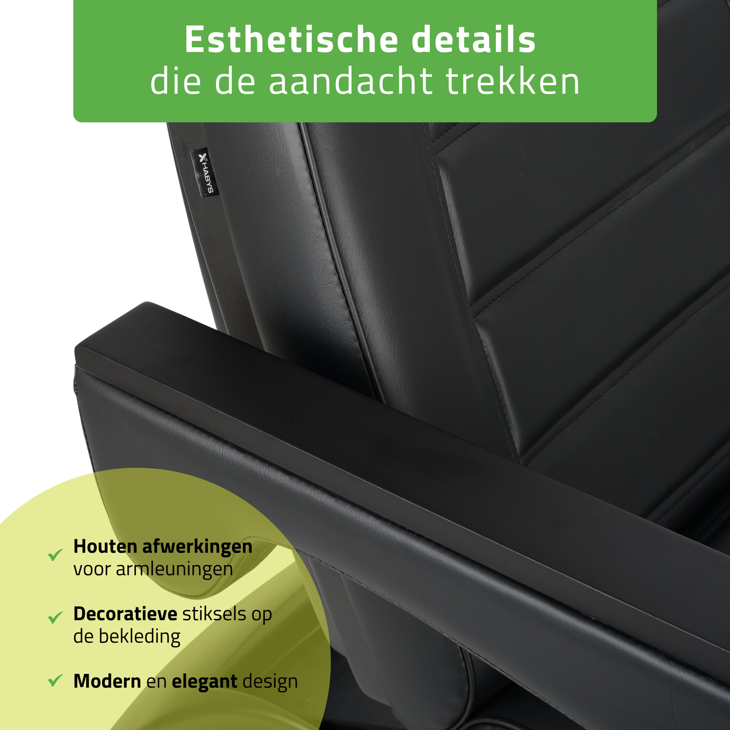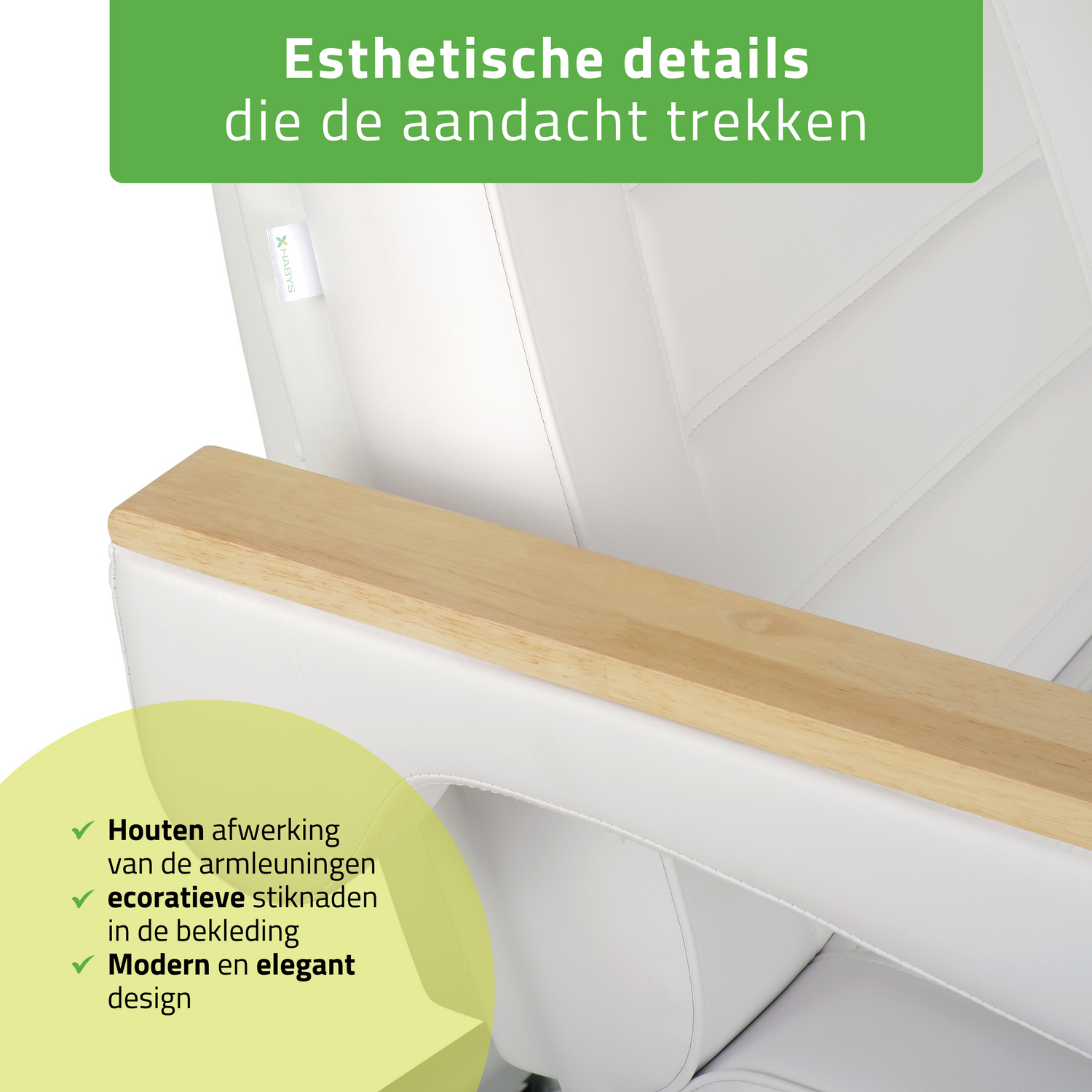 - elegant en modern design: hoogwaardige afwerking, houten details aan de armleuningen en verfijnde stiksels voor een stijlvolle, luxe uitstraling.