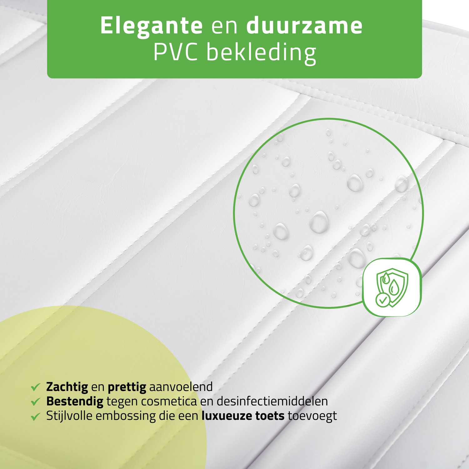 - hoogwaardige bekleding: vervaardigd van slijtvast PVC voor comfort, hygiëne en eenvoudige reiniging.