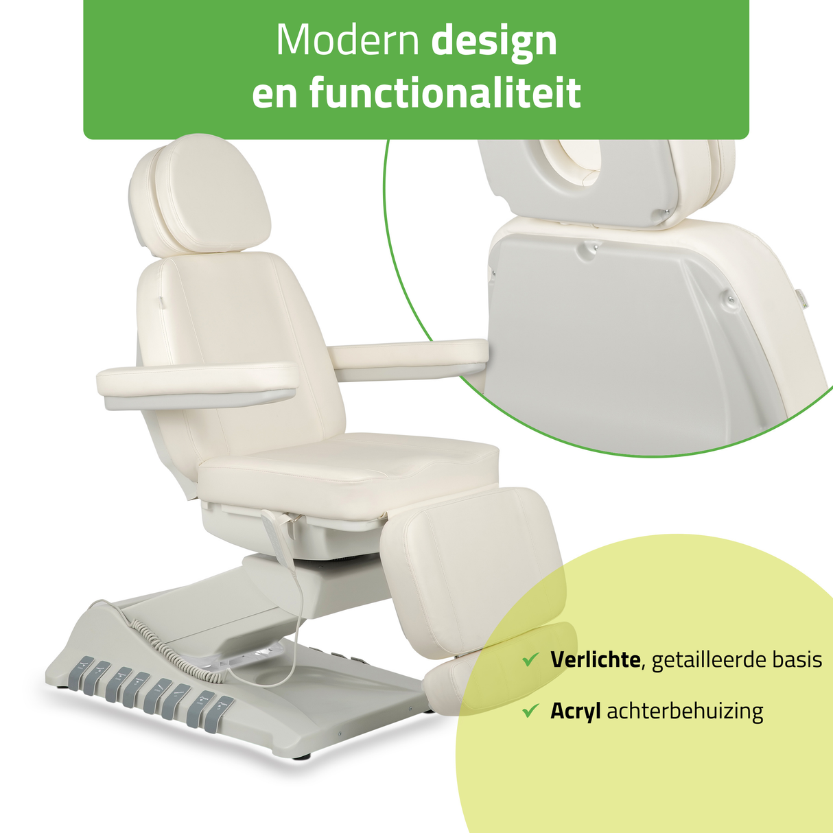 - De ideale combinatie van klantcomfort, ergonomie voor de cosmetisch specialist en een elegant uiterlijk