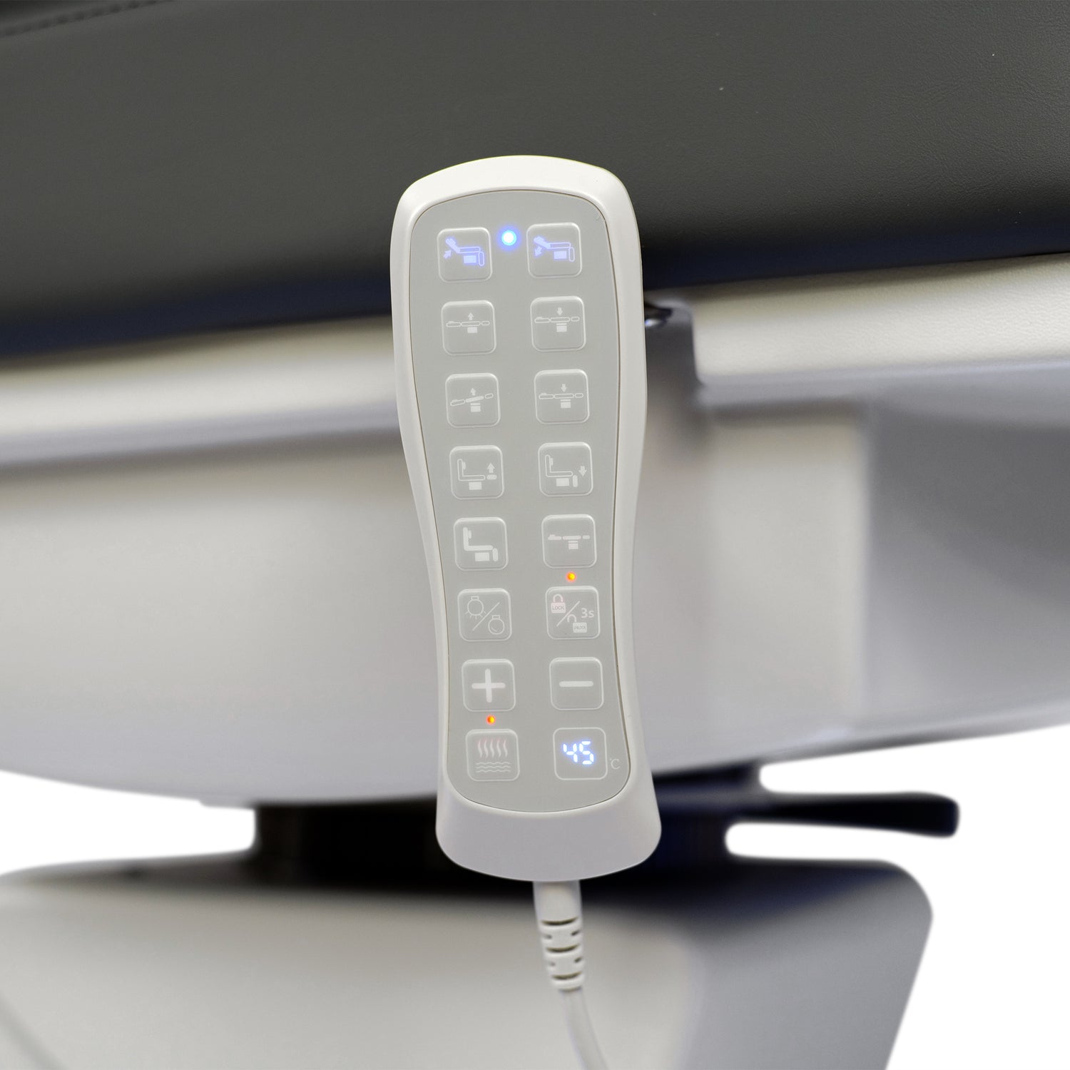 De Luxoria PRO 5 is uitgerust met een handafstandsbediening, een voetpaneel geïntegreerd in de basis, en een automatische resetfunctie – voor een snelle terugkeer naar de uitgangspositie.