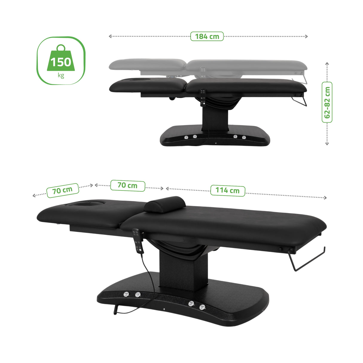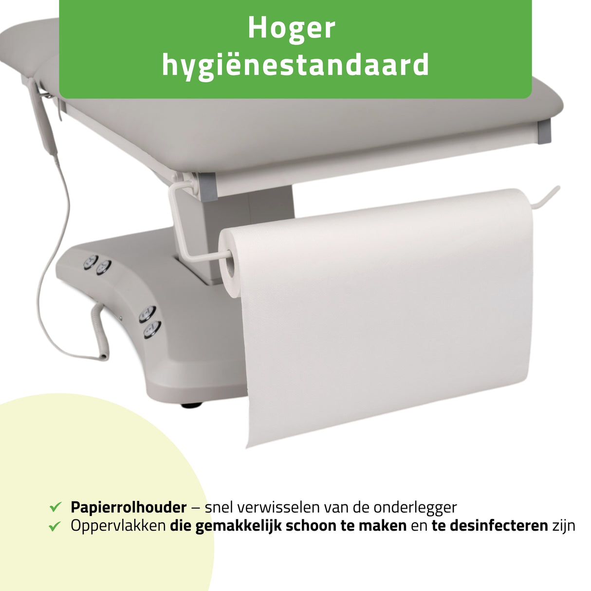 De speciaal gevormde basis maakt toegang tot de patiënt van verschillende zijden mogelijk en verbetert de ergonomie tijdens fysiotherapeutische, diagnostische en manuele behandelingen. - Elektrische hoogteverstelling van 62–82 cm