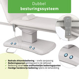 Aparte aandrijvingen voor hoogte- en rugverstelling zorgen voor een soepele werking en precieze positionering. - Dubbel bedieningssysteem – handbediening en geïntegreerd bedieningspaneel