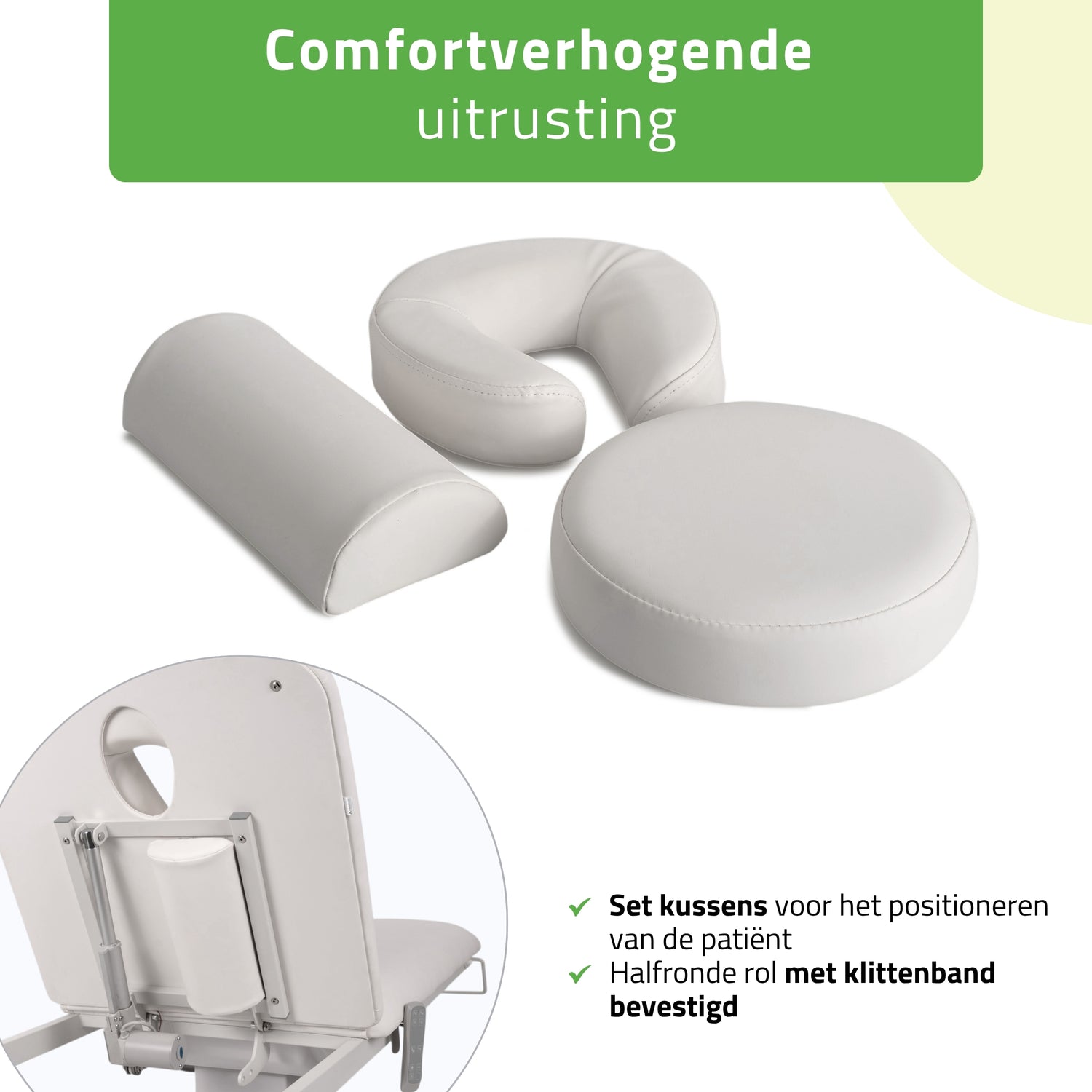 Maakt behandeling in buikligging mogelijk, ideaal voor fysiotherapie, massages en manuele therapieën. - Accessoires voor optimale positionering van de patiënt