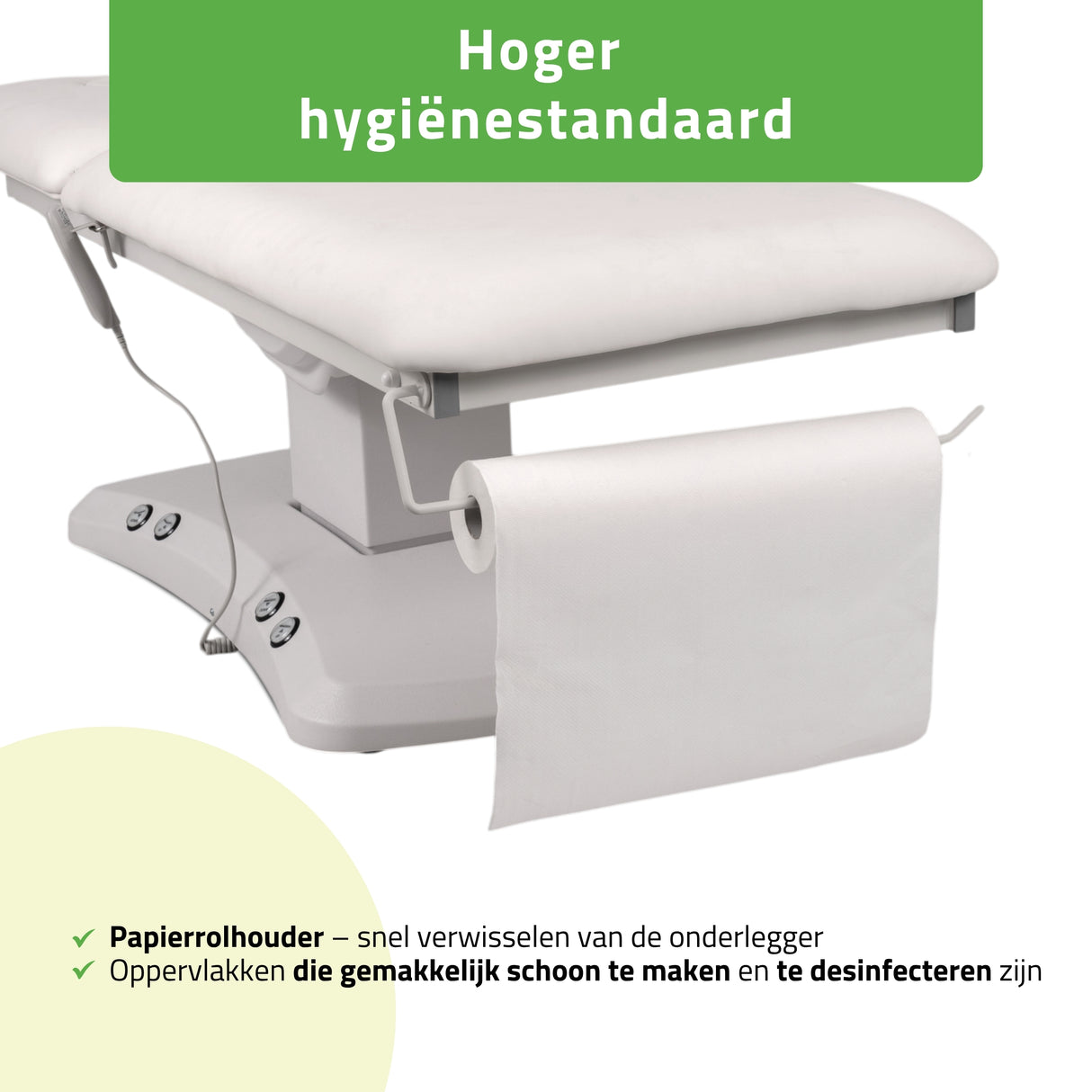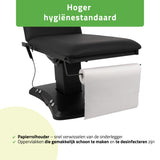 Een U-vormig kussen, een rond kussen en een stabiliserende halve rol zorgen voor een optimale ondersteuning tijdens behandelingen. - Geïntegreerde handdoekhouder