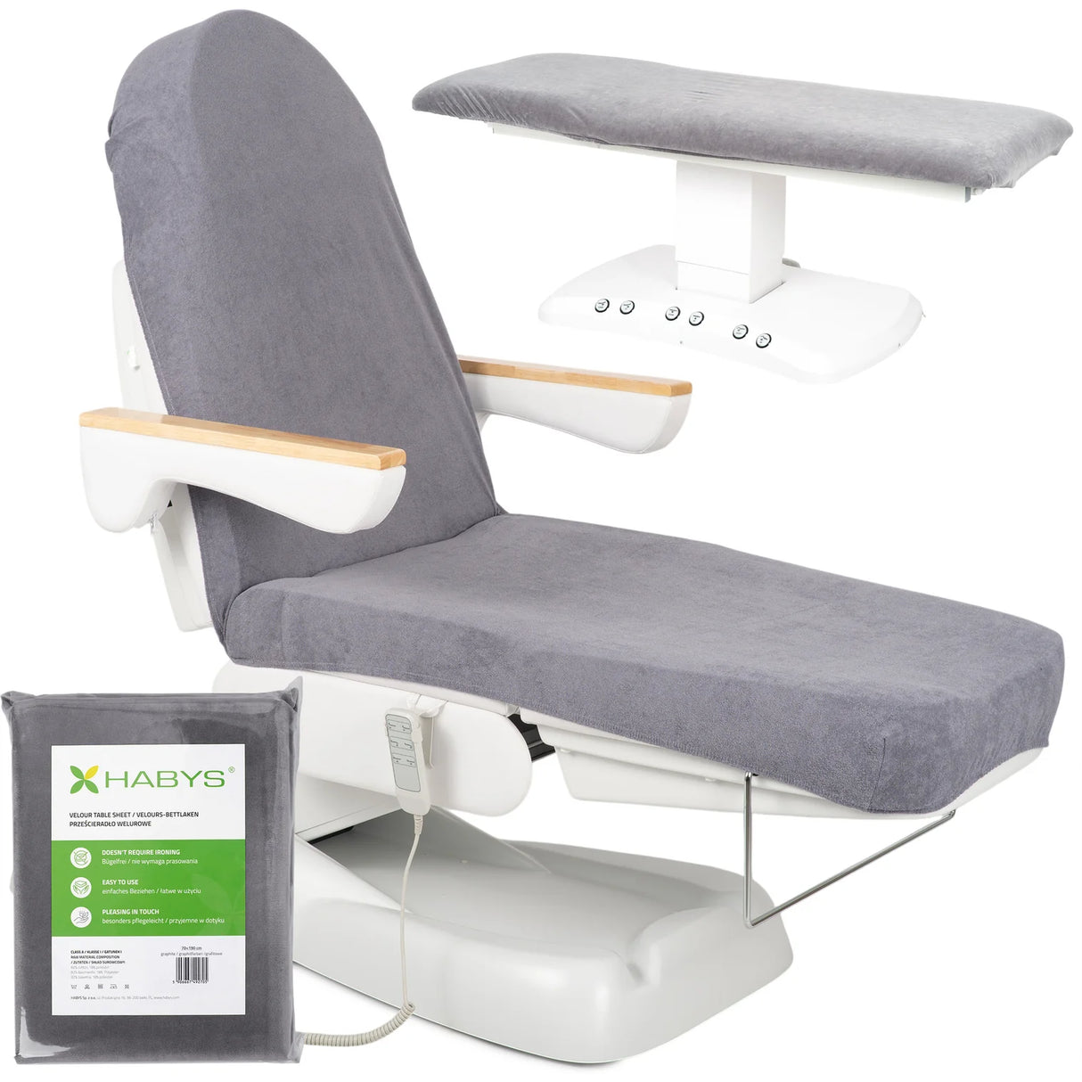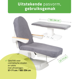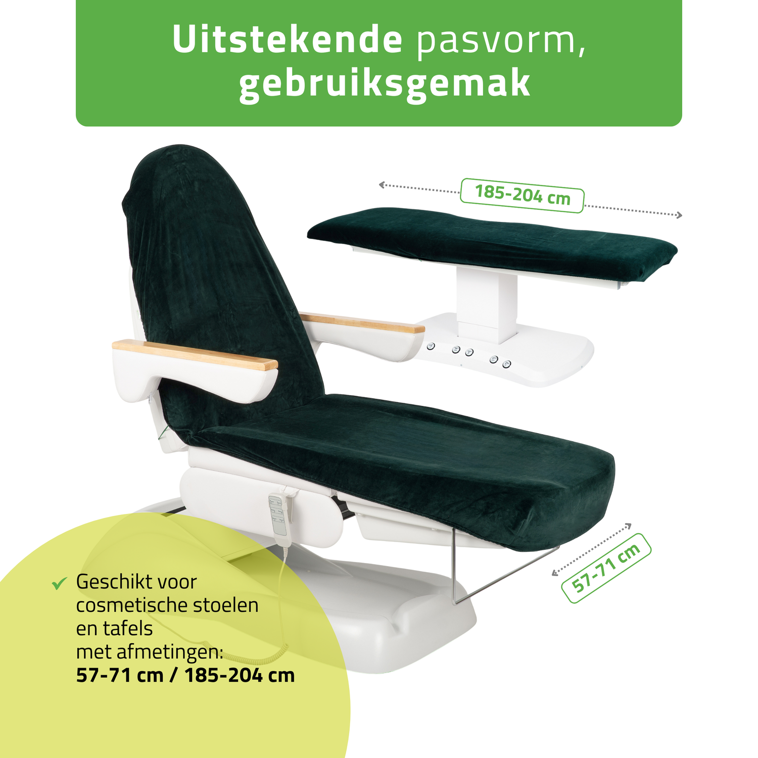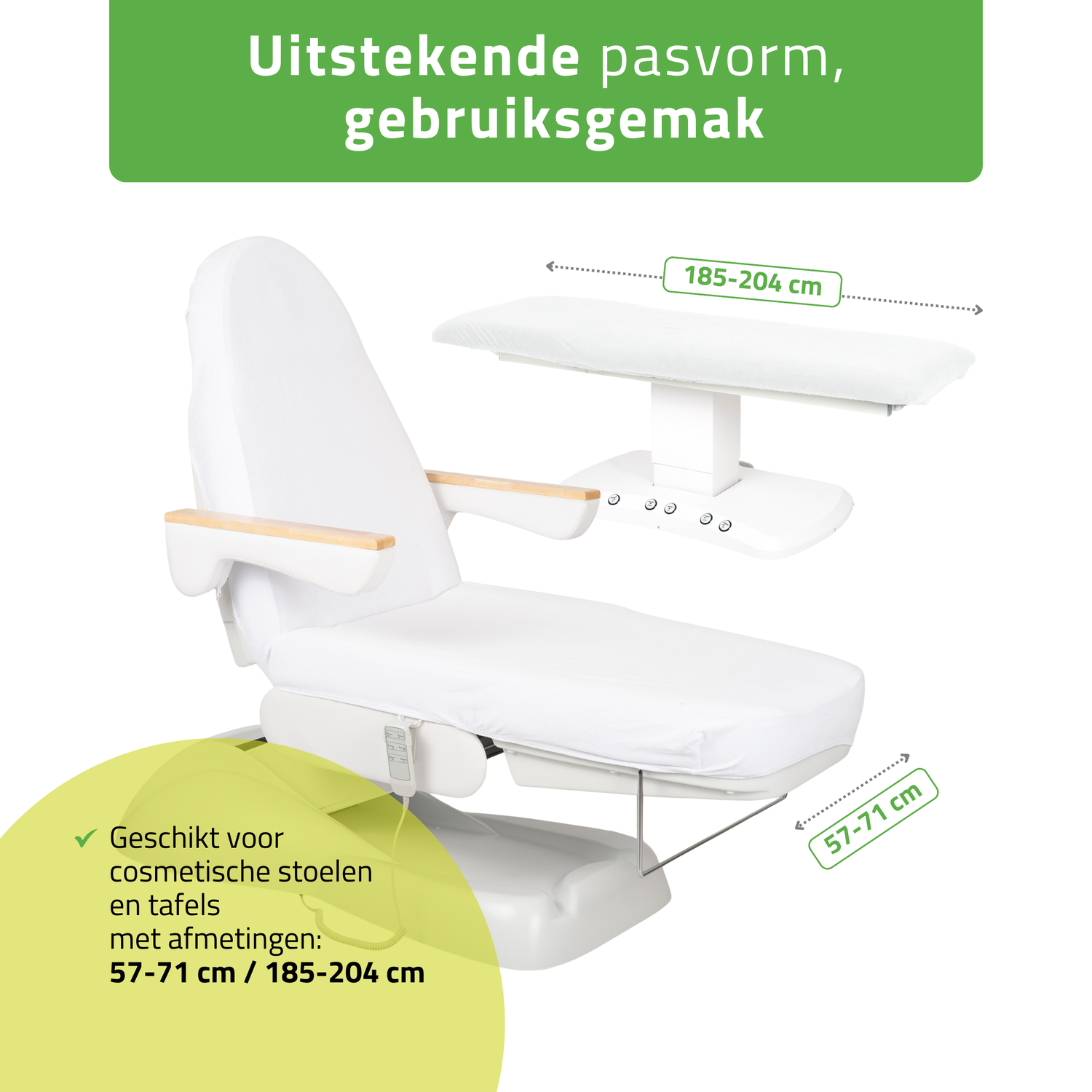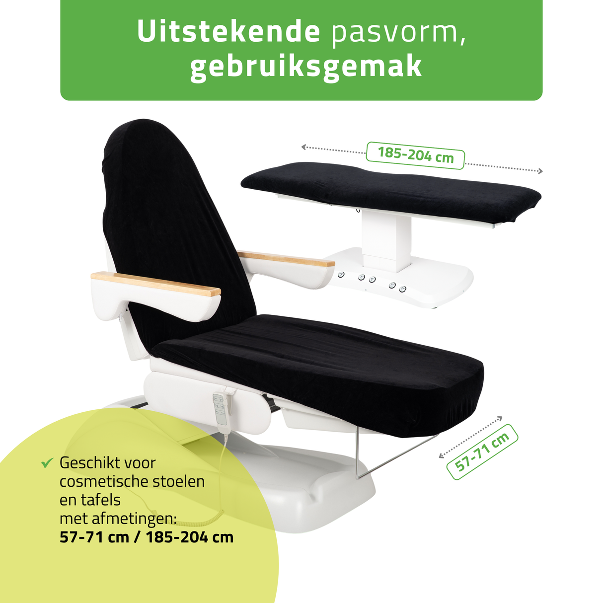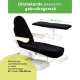 Universele pasvorm voor cosmetische stoelen, behandeltafels en massagetafels: de hoes is speciaal ontworpen voor cosmetische stoelen en behandeltafels – zowel inklapbare als elektrische modellen – evenals voor inklapbare massagetafels.