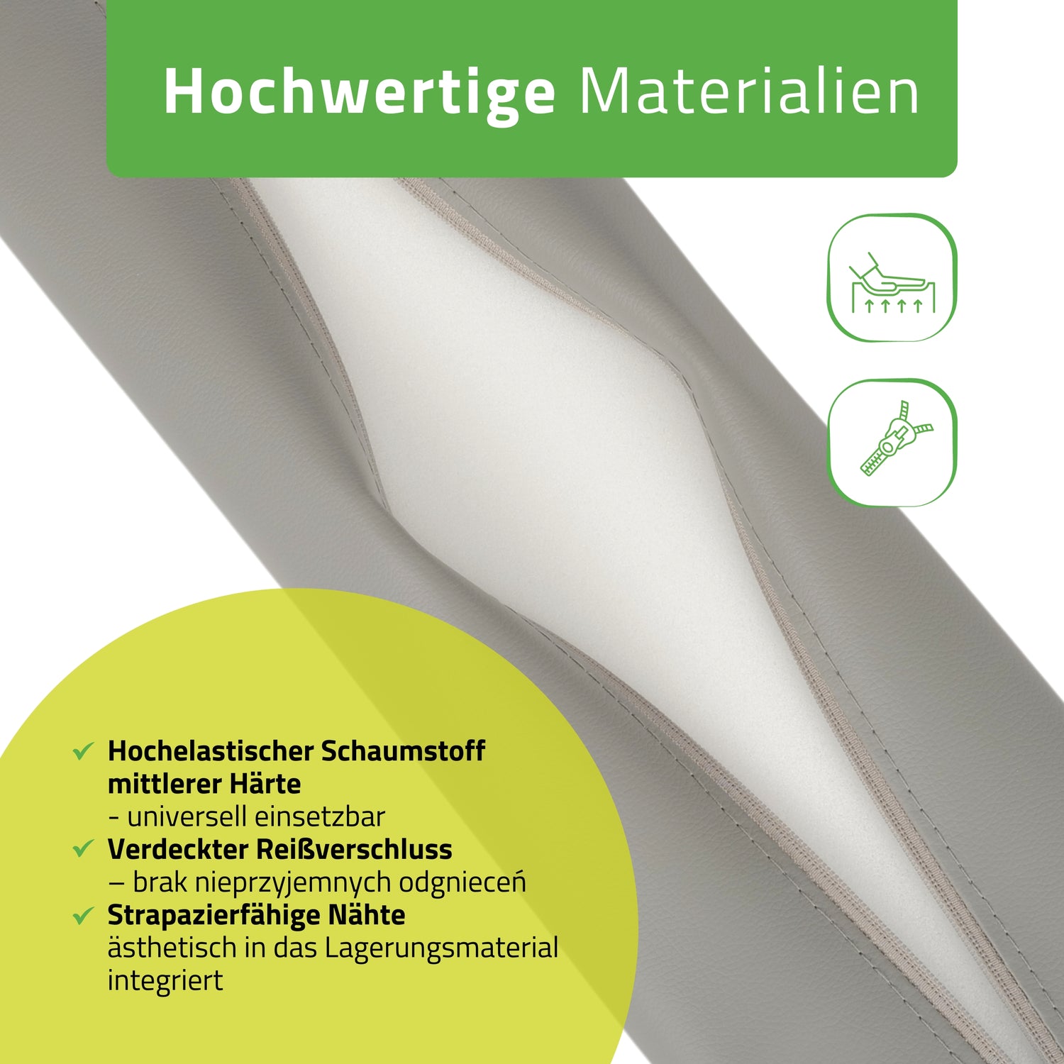 - Komfortabler, elastischer Schaumstoff mittleren Härtegrades, der optimale Unterstützung bei Massagen und Übungen bietet.
