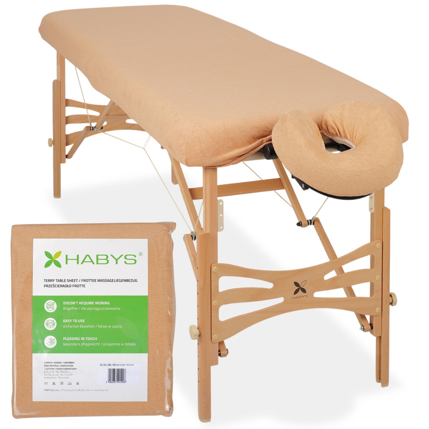 Set | Einteiliges Frottee Spannlaken für klappbare Massageliegen 70-75/180-185 | + Frottee-Bezug für die Kopfstütze - Beige ist auf Lager und wird versandt, sobald es wieder verfügbar ist